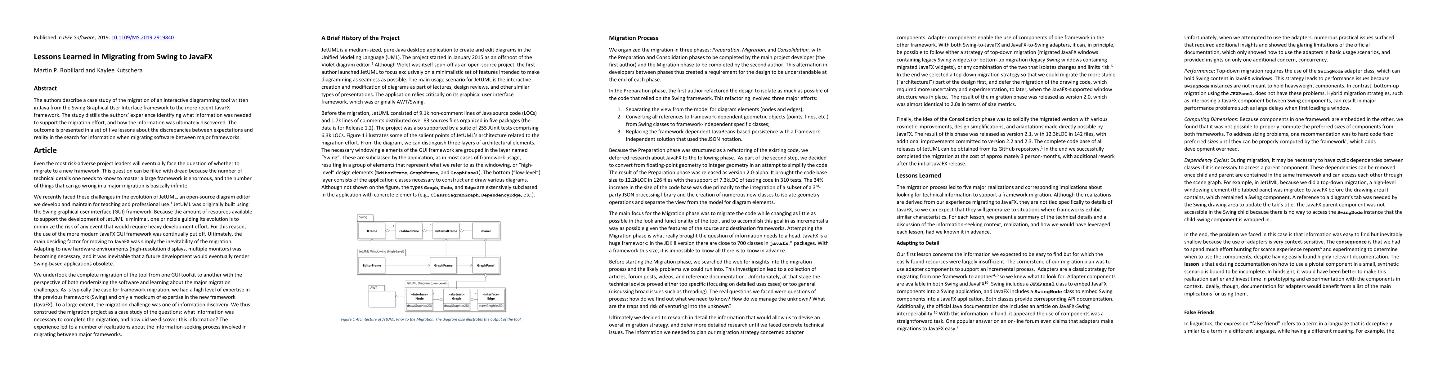 The authors describe a case study of the migration of an interactive diagramming tool written in Java from the Swing Graphical User Interface framework to the more recent JavaFX framework. The study distills the authors' experience identifying what information was needed to support the migration effort, and how the information was ultimately discovered. The outcome is presented in a set of five lessons about the discrepancies between expectations and reality in the search for information when migrating software between major frameworks.