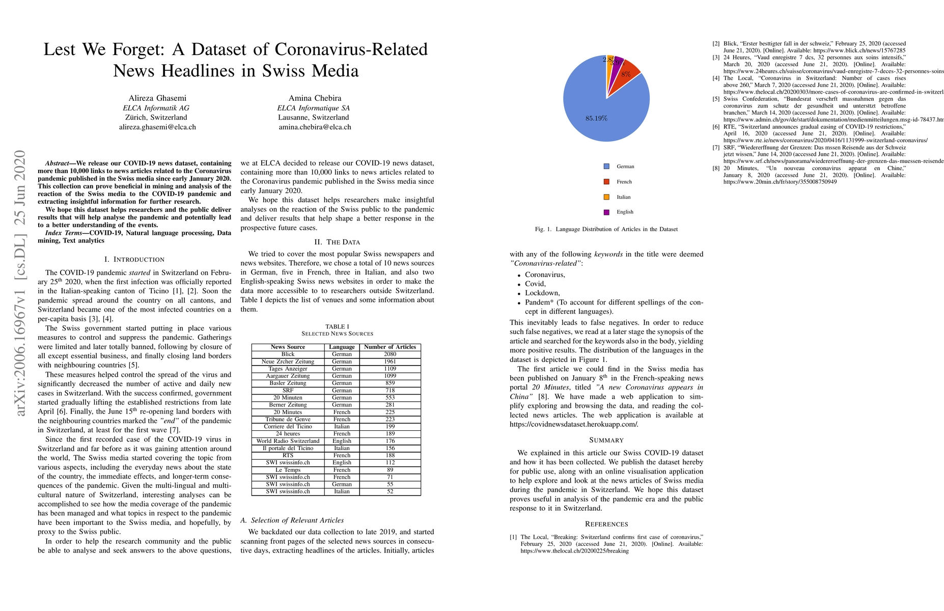 This paper introduces a dataset comprising over 10,000 Swiss media news headlines related to the COVID-19 pandemic, aiming to facilitate research on media reactions and pandemic insights. The dataset is expected to aid in understanding the pandemic's impact through detailed analysis.