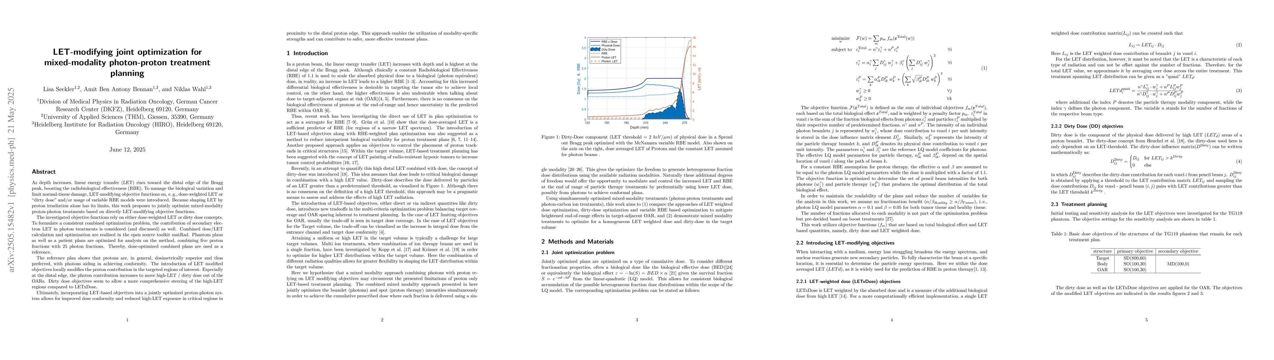 Researchers propose a new method for jointly optimizing proton-photon treatments to improve dose conformity and reduce high-LET exposure in critical regions. This approach enables the utilization of modality-specific strengths and contributes to safer, more effective treatment plans.