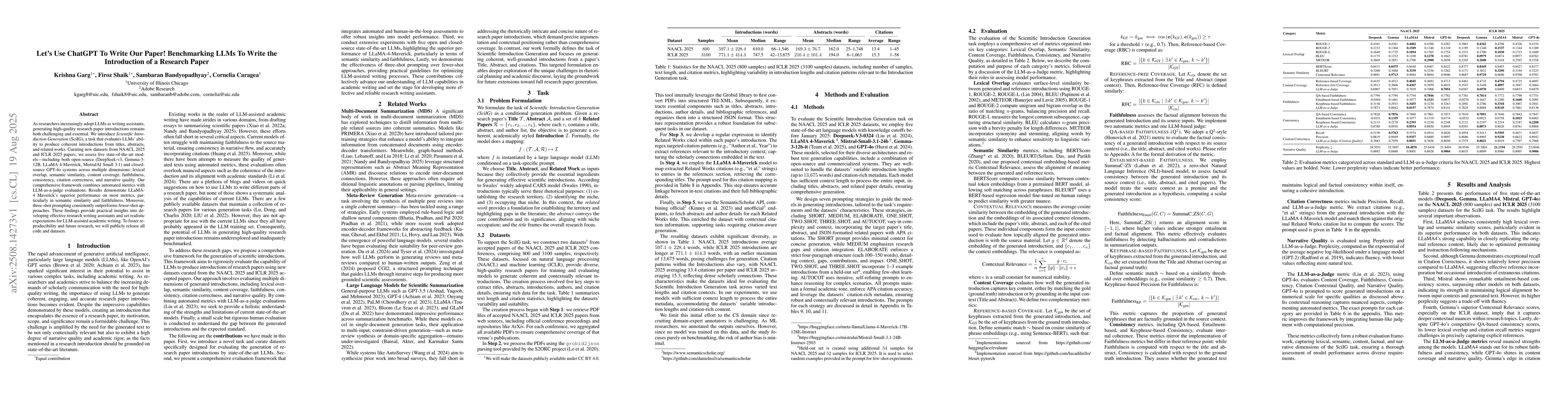 This research paper introduces Scientific Introduction Generation (SciIG), a task to evaluate large language models' (LLMs) ability to create coherent research paper introductions. By assessing five state-of-the-art models using various metrics, the study finds LLaMA-4 Maverick excels, especially in semantic similarity and faithfulness. Three-shot prompting also proves more effective. The findings offer insights for developing research writing assistants and set expectations for LLM-assisted academic writing. All code and datasets will be made public for reproducibility and future research.