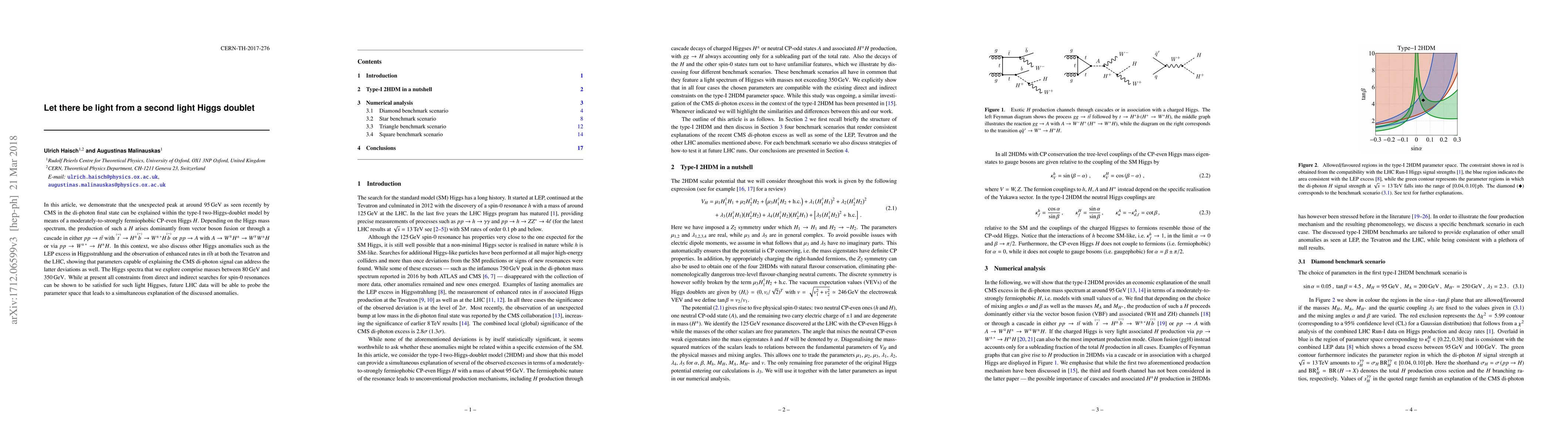In this article, we demonstrate that the unexpected peak at around $95 \, {\rm GeV}$ as seen recently by CMS in the di-photon final state can be explained within the type-I~two-Higgs-doublet model by means of a moderately-to-strongly fermiophobic CP-even Higgs $H$. Depending on the Higgs mass spectrum, the production of such~a~$H$ arises dominantly from vector boson fusion or through a cascade in either $pp \to t \bar t$ with $\overset{(-)}{t} \to H^{\pm} \overset{(-)}{b} \to W^{\pm \, \ast} H \overset{(-)}{b}$ or $pp \to A$ with $A \to W^{\mp} H^{\pm} \to W^{\mp} W^{\pm} H$ or via $pp \to W^{\pm \, \ast} \to H^\pm H$. In this context, we also discuss other Higgs anomalies such as the LEP excess in Higgsstrahlung and the observation of enhanced rates in $t \bar t h$ at both the Tevatron and the LHC, showing that parameters capable of explaining the CMS di-photon signal can address the latter deviations as well. The Higgs spectra that we explore comprise masses between $80 \, {\rm GeV}$ and $350\, {\rm GeV}$. While at present all constraints from direct and indirect searches for spin-0 resonances can be shown to be satisfied for such light Higgses, future LHC data will be able to probe the parameter space that leads to a simultaneous explanation of the discussed anomalies.