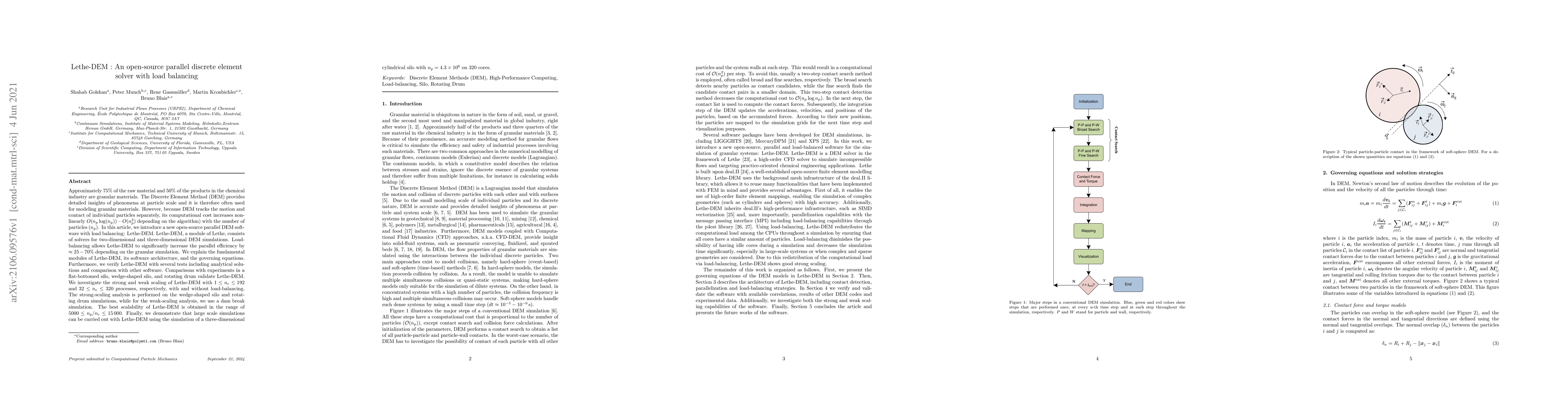 Lethe-DEM is an open-source parallel Discrete Element Method (DEM) solver designed to efficiently model granular materials, achieving significant load balancing improvements in parallel efficiency. The software demonstrates strong scalability and can handle large-scale simulations, as shown by a 4.3 million particle simulation on 320 cores.