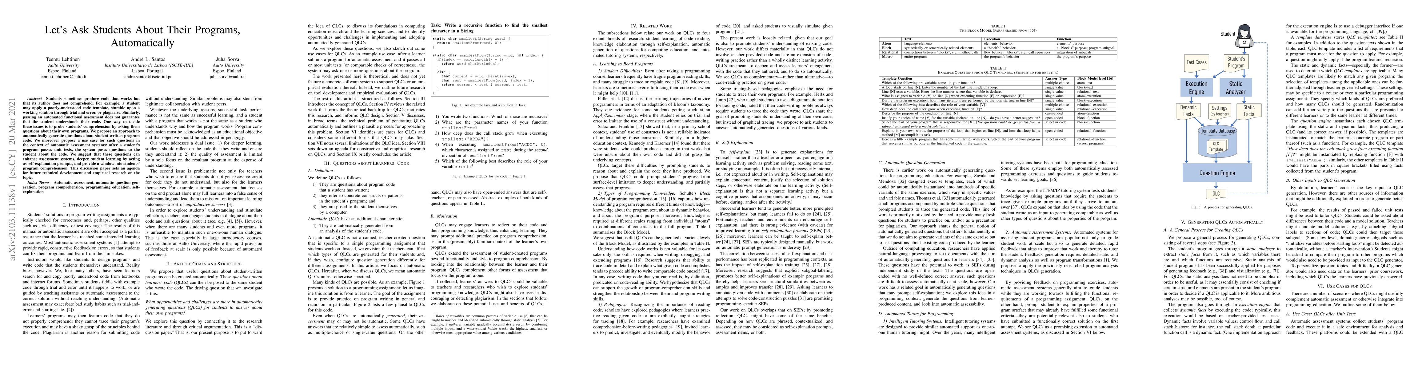 Charles Koutcheme, Arto Hellas, Teemu Lehtinen