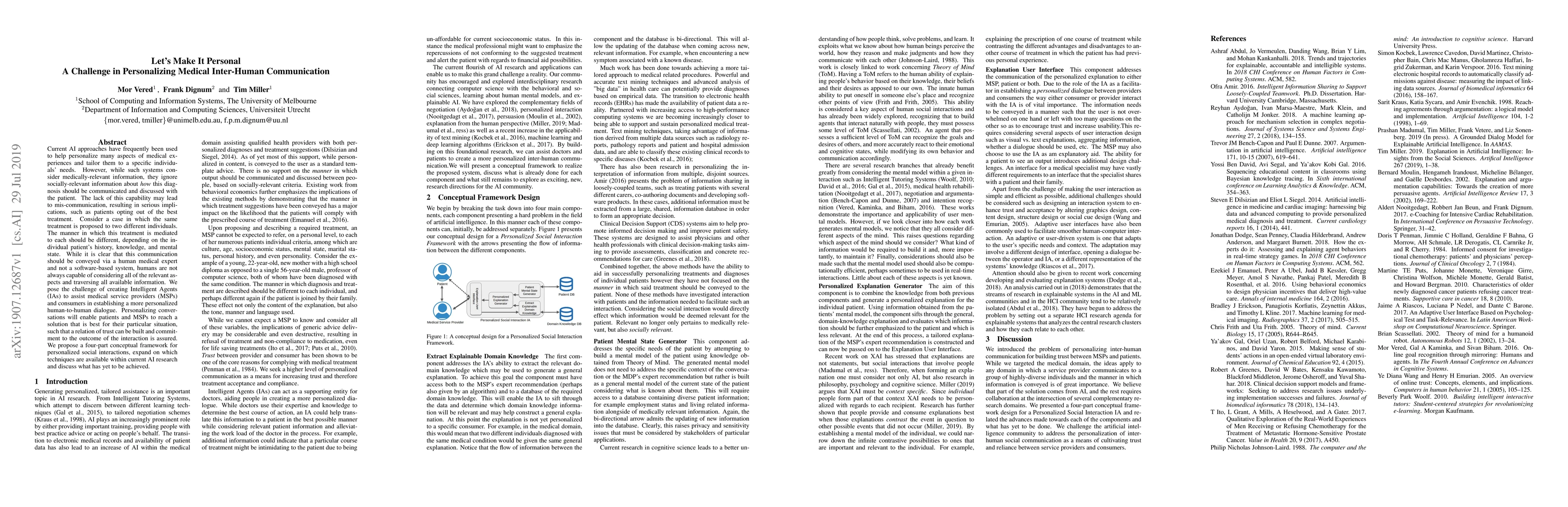 Current AI approaches have frequently been used to help personalize many aspects of medical experiences and tailor them to a specific individuals' needs. However, while such systems consider medically-relevant information, they ignore socially-relevant information about how this diagnosis should be communicated and discussed with the patient. The lack of this capability may lead to mis-communication, resulting in serious implications, such as patients opting out of the best treatment. Consider a case in which the same treatment is proposed to two different individuals. The manner in which this treatment is mediated to each should be different, depending on the individual patient's history, knowledge, and mental state. While it is clear that this communication should be conveyed via a human medical expert and not a software-based system, humans are not always capable of considering all of the relevant aspects and traversing all available information. We pose the challenge of creating Intelligent Agents (IAs) to assist medical service providers (MSPs) and consumers in establishing a more personalized human-to-human dialogue. Personalizing conversations will enable patients and MSPs to reach a solution that is best for their particular situation, such that a relation of trust can be built and commitment to the outcome of the interaction is assured. We propose a four-part conceptual framework for personalized social interactions, expand on which techniques are available within current AI research and discuss what has yet to be achieved.