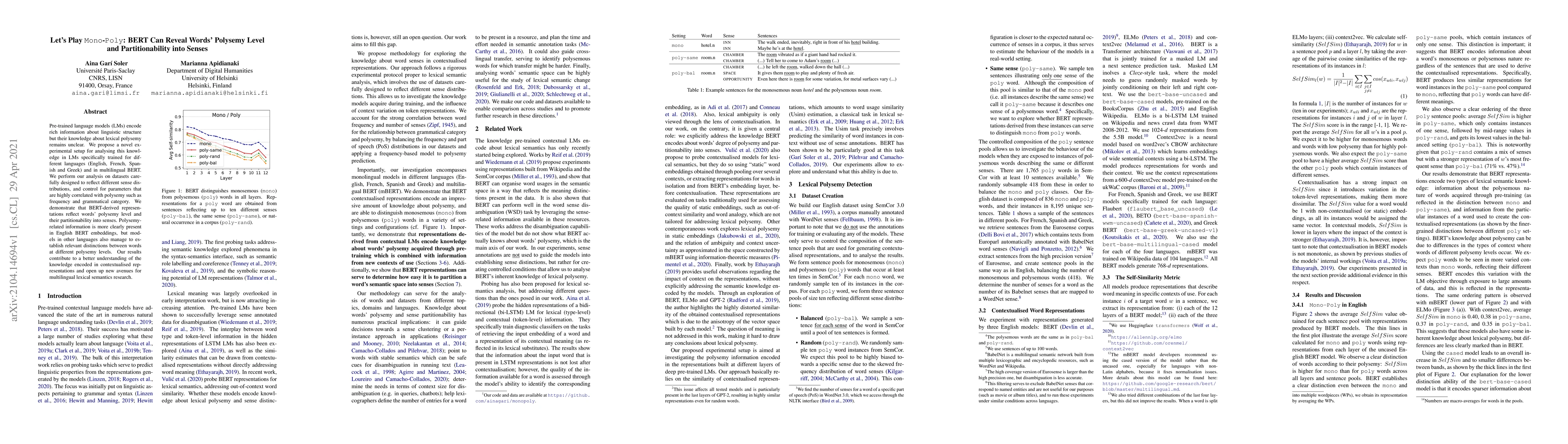 This study explores how BERT models, especially multilingual BERT, capture lexical polysemy through a novel experimental setup, revealing that BERT representations reflect words' polysemy levels and partitionability into senses, with clearer insights from English BERT. The findings enhance understanding of contextualised linguistic representations and inform multilingual lexical semantics research.