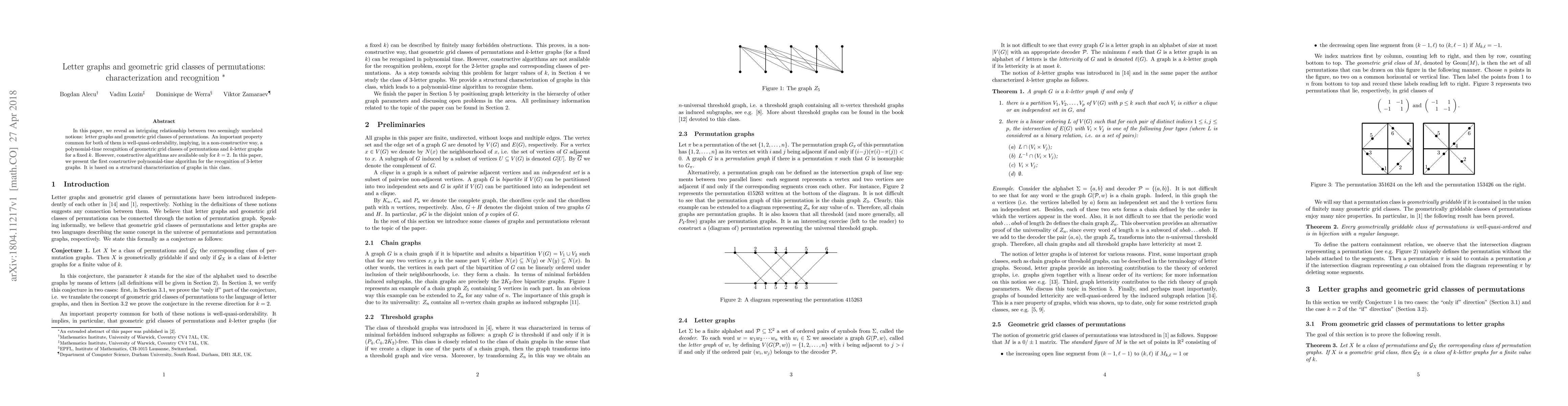 This paper explores the connection between letter graphs and geometric grid classes of permutations, revealing their shared well-quasi-orderability property. It introduces the first constructive polynomial-time algorithm for recognizing $3$-letter graphs, based on their structural characterization.