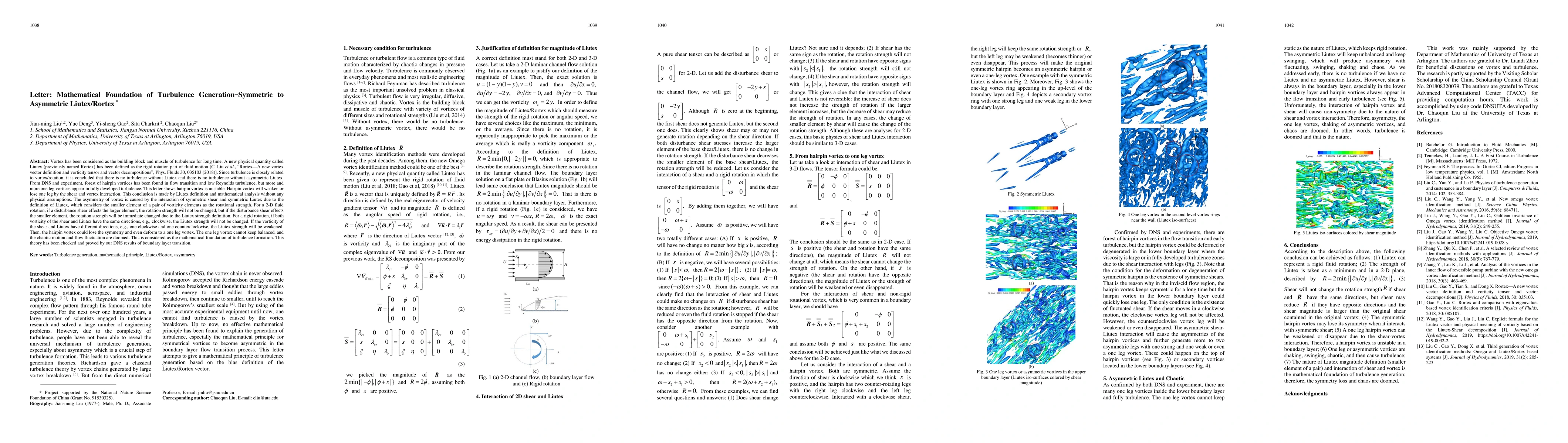 This paper introduces Liutex as a measure of rigid rotation in fluid dynamics, demonstrating that hairpin vortices in turbulent flows are inherently unstable. Through mathematical analysis, it shows that vortex asymmetry arises from the interaction of shear and Liutex, leading to the weakening or loss of vortex legs, ultimately contributing to turbulence formation.