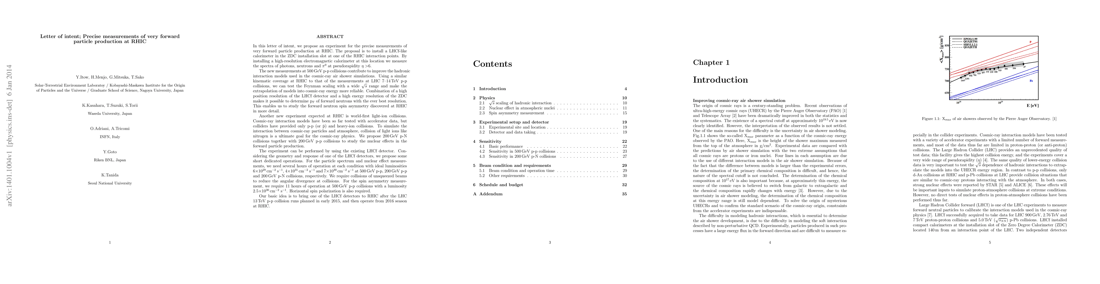 In this paper, we propose an experiment for the precise measurements of very forward particle production at RHIC. The proposal is to install a LHCf-like calorimeter in the ZDC installation slot at one of the RHIC interaction points. By installing a high-resolution electromagnetic calorimeter at this location we measure the spectra of photons, neutrons and pi0 at pseudo rapidity eta above 6. The new measurements at 500 GeV p-p collisions contribute to improve the hadronic interaction models used in the cosmic-ray air shower simulations. Using a similar kinematic coverage at RHIC to that of the measurements at LHC, we can test the Feynman scaling with a wide energy range and make the extrapolation of models into cosmic-ray energy more reliable. Combination of a high position resolution of the LHCf detector and a high energy resolution of the ZDC makes it possible to determine pT of forward neutrons with the ever best resolution. This enables us to study the forward neutron spin asymmetry discovered at RHIC in more detail. Another new experiment expected at RHIC is world-first light-ion collisions. Cosmic-ray interaction models have been so far tested with accelerator data, but colliders have provided only p-p and heavy-ion collisions. To simulate the interaction between cosmic-ray particles and atmosphere, collision of light ions like nitrogen is a ultimate goal for the cosmic-ray physics. We propose 200 GeV p-N collisions together with 200 GeV p-p collisions to study the nuclear effects in the forward particle production. The experiment can be performed by using the existing LHCf detector. Considering the geometry and response of one of the LHCf detectors, we propose some short dedicated operations. Ideal beam conditions are summarized in this paper. Our basic idea is to bring one of the LHCf detectors to RHIC and then operate from 2016 season at RHIC.