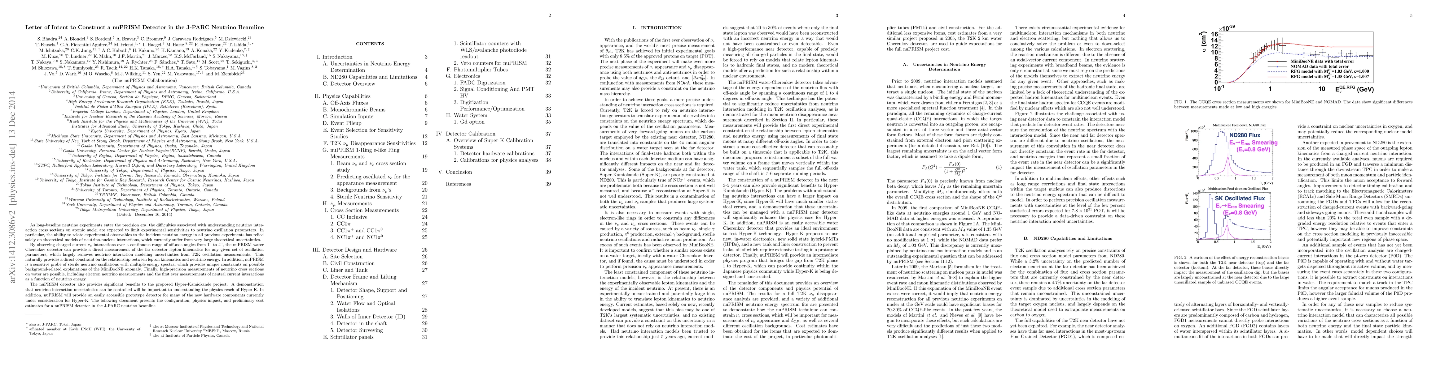 As long-baseline neutrino experiments enter the precision era, the difficulties associated with understanding neutrino interaction cross sections on atomic nuclei are expected to limit experimental sensitivities to oscillation parameters. In particular, the ability to relate experimental observables to neutrino energy in previous experiments has relied solely on theoretical models of neutrino-nucleus interactions, which currently suffer from very large theoretical uncertainties. By observing charged current $\nu_\mu$ interactions over a continuous range of off-axis angles from 1 to 4 degrees, the nuPRISM water Cherenkov detector can provide a direct measurement of the far detector lepton kinematics for any given set of oscillation parameters, which largely removes neutrino interaction modeling uncertainties from T2K oscillation measurements. This naturally provides a direct constraint on the relationship between lepton kinematics and neutrino energy. In addition, nuPRISM is a sensitive probe of sterile neutrino oscillations with multiple energy spectra, which provides unique constraints on possible background-related explanations of the MiniBooNE anomaly. Finally, high-precision measurements of neutrino cross sections on water are possible, including $\nu_e$ measurements and the first ever measurements of neutral current interactions as a function of neutrino energy. The nuPRISM detector also benefits the proposed Hyper-Kamiokande project. A demonstration that neutrino interaction uncertainties can be controlled will be important to understanding the physics reach of Hyper-K. In addition, nuPRISM will provide an easily accessible prototype detector for many of the new hardware components currently under consideration for Hyper-K. The following document presents the configuration, physics impact, and preliminary cost estimates for a nuPRISM detector in the J-PARC neutrino beamline.