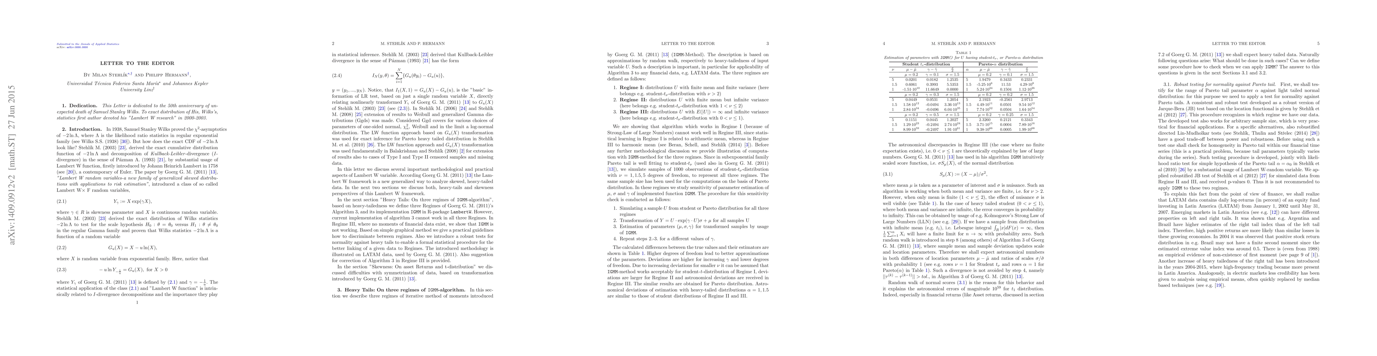 Summary: This letter critiques Goerg G. M.'s (2011) paper on Lambert W random variables, discussing the proposed new skewed distribution family and its applications in risk estimation, while suggesting potential areas for improvement. The author highlights both the innovative aspects and limitations of the distribution model.