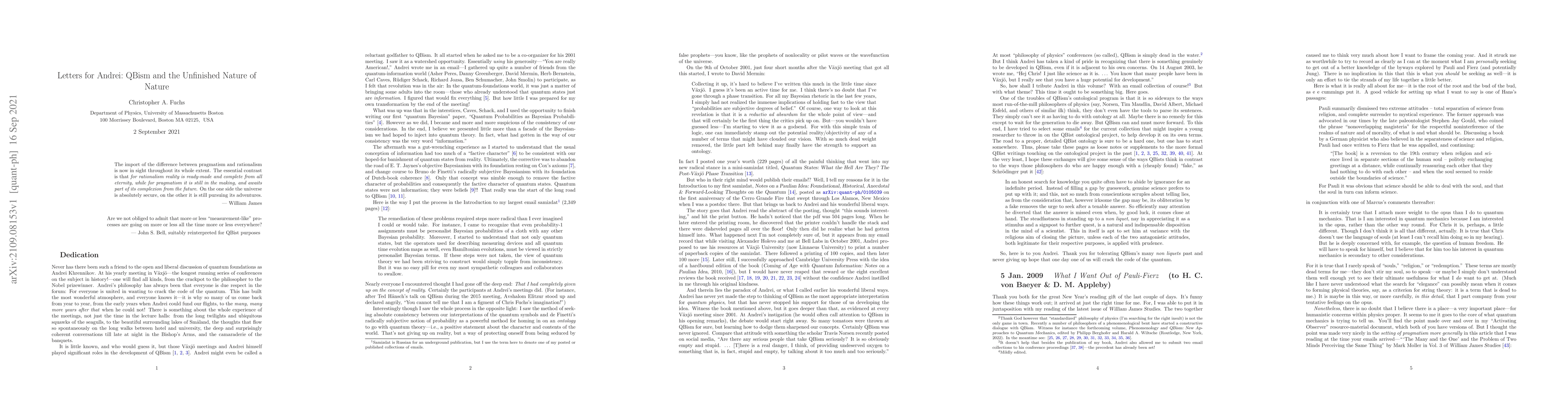 From the Text: How shall I tribute Andrei Khrennikov in this volume? With an email collection of course! But with what theme? It ought to be something big. One of the troubles of QBism's ontological program is that it is so sideways to the ways most run-of-the-mill philosophers of physics think, they don't even have the tools to parse its sentences. They simply can't see it as having to do with ontology at all. Maybe there is no remedy for this except to wait for the generation to die away. But QBism can and must move forward. Here we select some emails that might inspire a young researcher to throw in on the QBist ontological project, to help develop it on its own terms. The road to a proper, detailed QBist ontology is sure to be a hard one, but one has to start somewhere.
