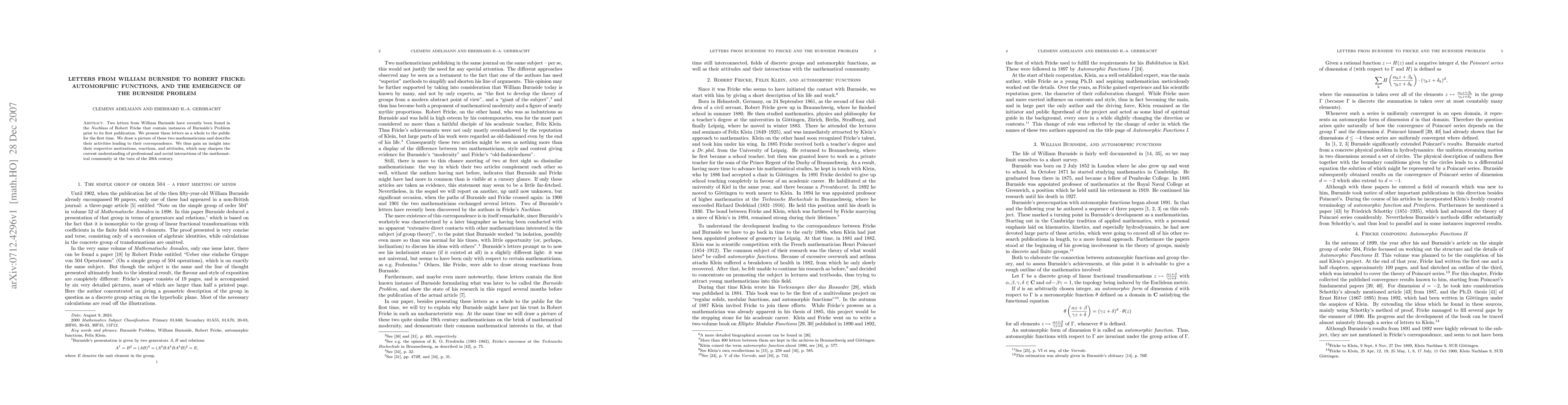 The paper presents two letters from William Burnside to Robert Fricke that contain instances of Burnside's Problem, shedding light on the mathematicians' motivations and interactions in the early 20th century.