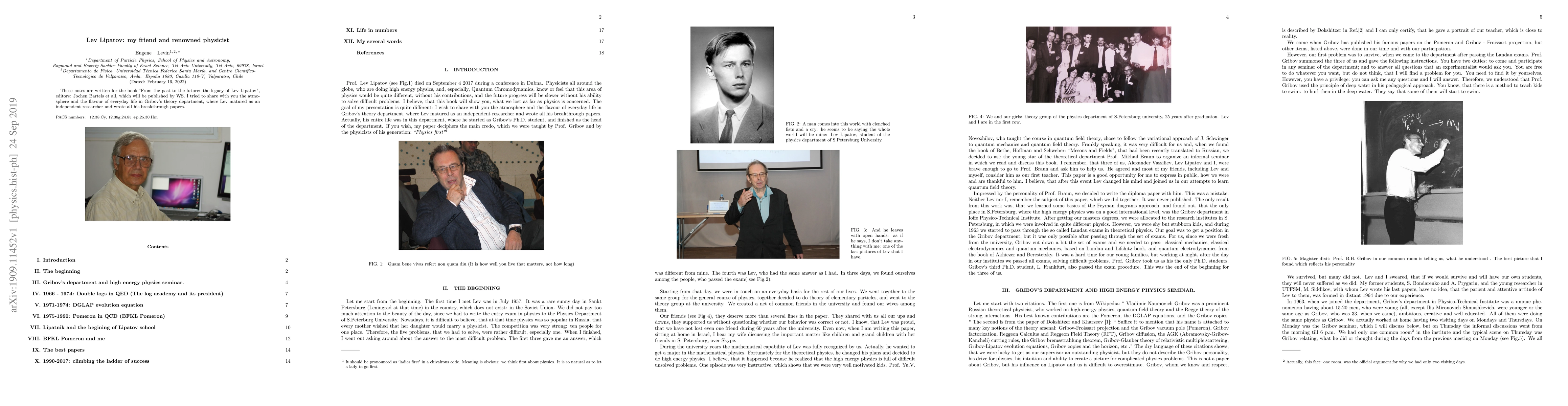 These notes are written for the book "From the past to the future: the legacy of Lev Lipatov", editors: Jochen Bartels et all, which will be published by WS. I tried to share with you the atmosphere and the flavour of everyday life in Gribov's theory department, where Lev matured as an independent researcher and wrote all his breakthrough papers.