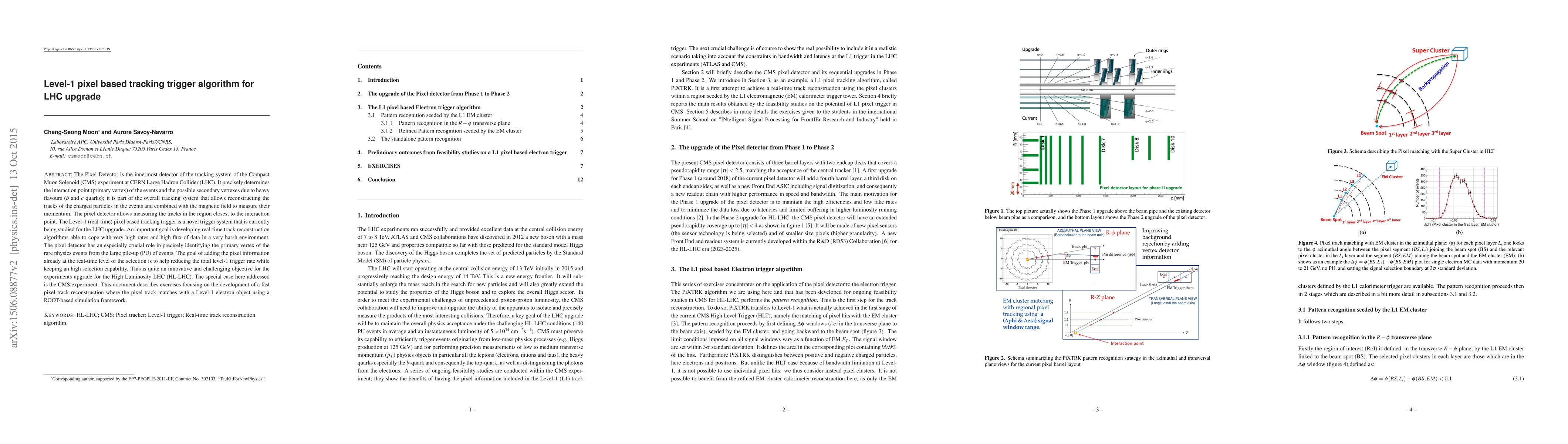 The Pixel Detector is the innermost detector of the tracking system of the Compact Muon Solenoid (CMS) experiment at CERN Large Hadron Collider (LHC). It precisely determines the interaction point (primary vertex) of the events and the possible secondary vertexes due to heavy flavours ($b$ and $c$ quarks); it is part of the overall tracking system that allows reconstructing the tracks of the charged particles in the events and combined with the magnetic field to measure their impulsion. The pixel detector allows measuring the tracks in the region closest to the interaction point. The Level-1 (real-time) pixel based tracking trigger is a novel trigger system that is currently being studied for the LHC upgrade. An important goal is developing real-time track reconstruction algorithms able to cope with very high rates and high flux of data in a very harsh environment. The pixel detector has an especially crucial role in precisely identifying the primary vertex of the rare physics events from the large pile-up (PU) of events. The goal of adding the pixel information already at the real-time level of the selection is to help reducing the total level-1 trigger rate while keeping an high selection capability. This is quite an innovative and challenging objective for the experiments upgrade for the High Luminosity LHC (HL-LHC). The special case here addressed is the CMS experiment. This document describes exercises focusing on the development of a fast pixel track reconstruction where the pixel track matches with a Level-1 electron object using a ROOT-based simulation framework.