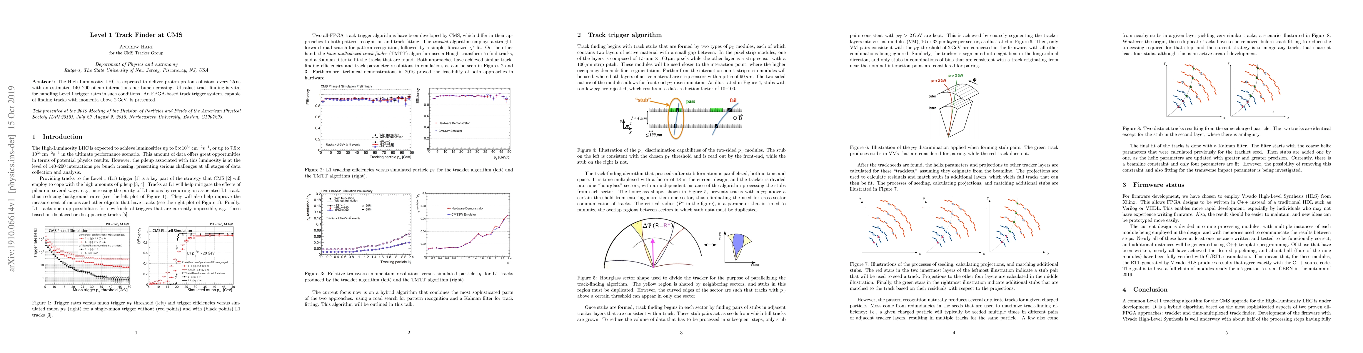 The paper introduces an FPGA-based track finder for the CMS experiment to manage ultrafast track detection amidst high collision rates in the High-Luminosity LHC, focusing on tracks with momenta above 2 GeV. This system is crucial for handling the increased trigger rates due to frequent proton-proton collisions and pileup interactions.
