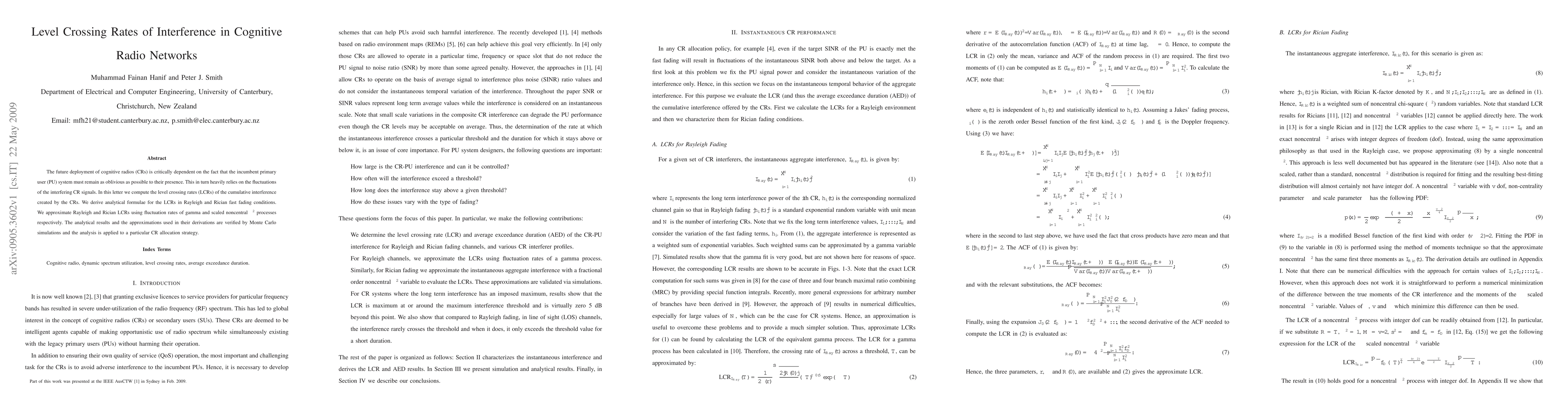 Researchers computed level crossing rates of cumulative interference in cognitive radio networks, deriving analytical formulas for Rayleigh and Rician fading conditions, and verified results with Monte Carlo simulations.