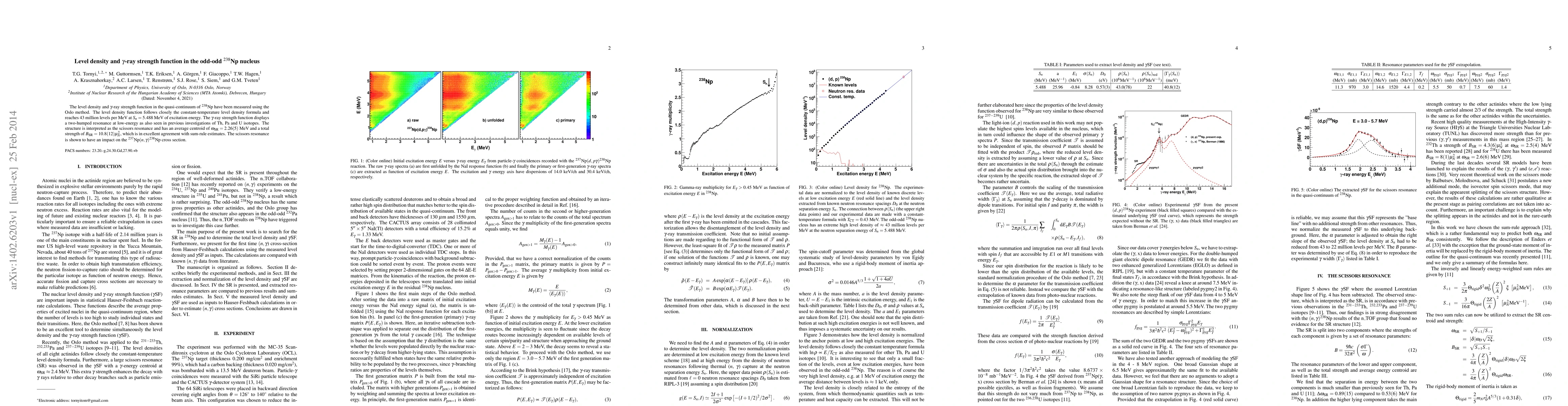 The Oslo method measured level density in 238Np, reaching 43 million levels per MeV at 5.488 MeV excitation, closely following constant-temperature level density formula. Gamma-ray strength function showed a two-humped scissors resonance at low-energy with centroid 2.26(5) MeV and strength 10.8(12)m2N, aligning with sum-rule estimates, impacting 237Np(n; g)238Np cross section.