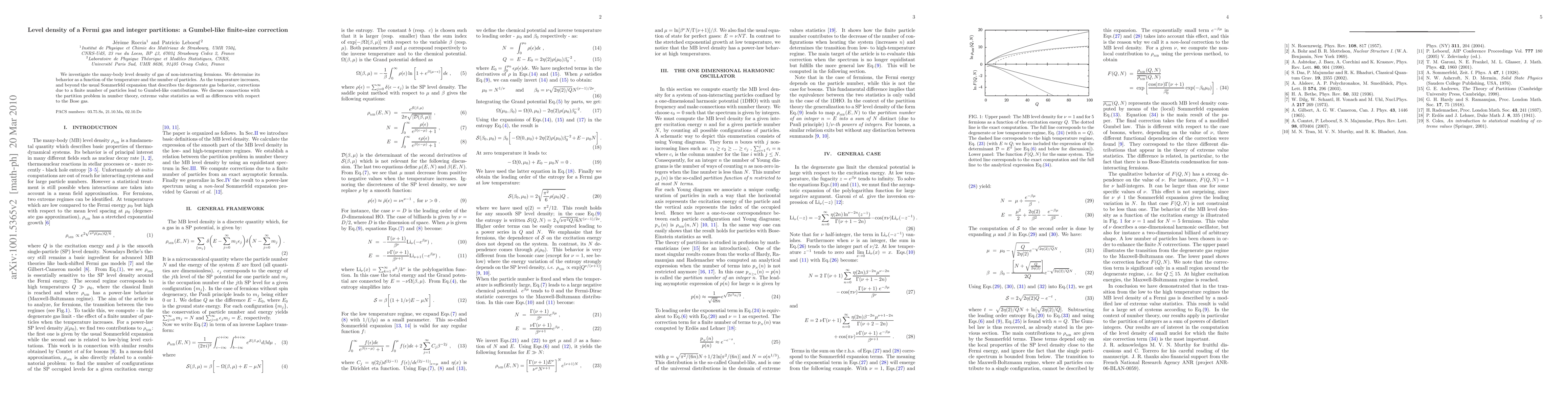This paper investigates the level density of a Fermi gas, finding that beyond the usual Sommerfeld expansion, corrections lead to Gumbel-like contributions as temperature increases and particle number grows.