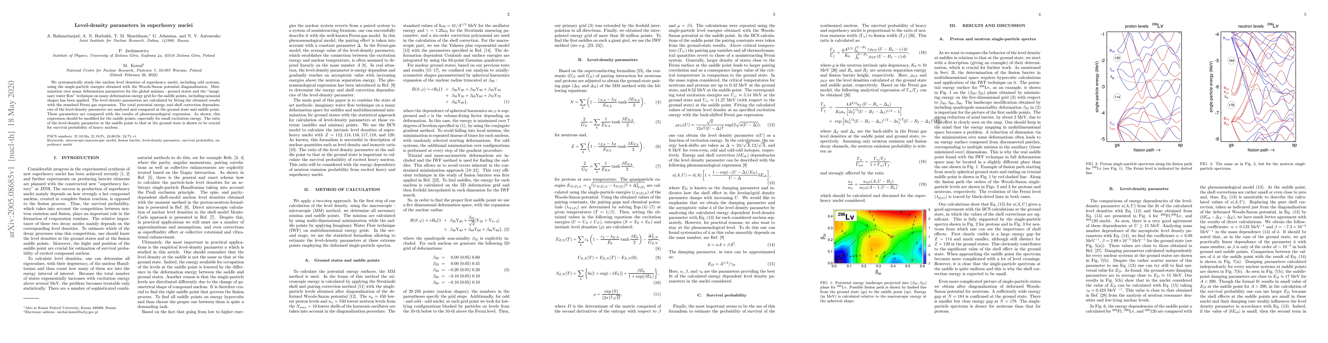 This paper investigates nuclear level densities in superheavy nuclei, employing Woods-Saxon potential diagonalization and advanced deformation techniques. It finds that the level-density parameters at saddle points require modifications for small excitation energies and highlights the importance of their ratio to ground state parameters for heavy nucleus survival probability.
