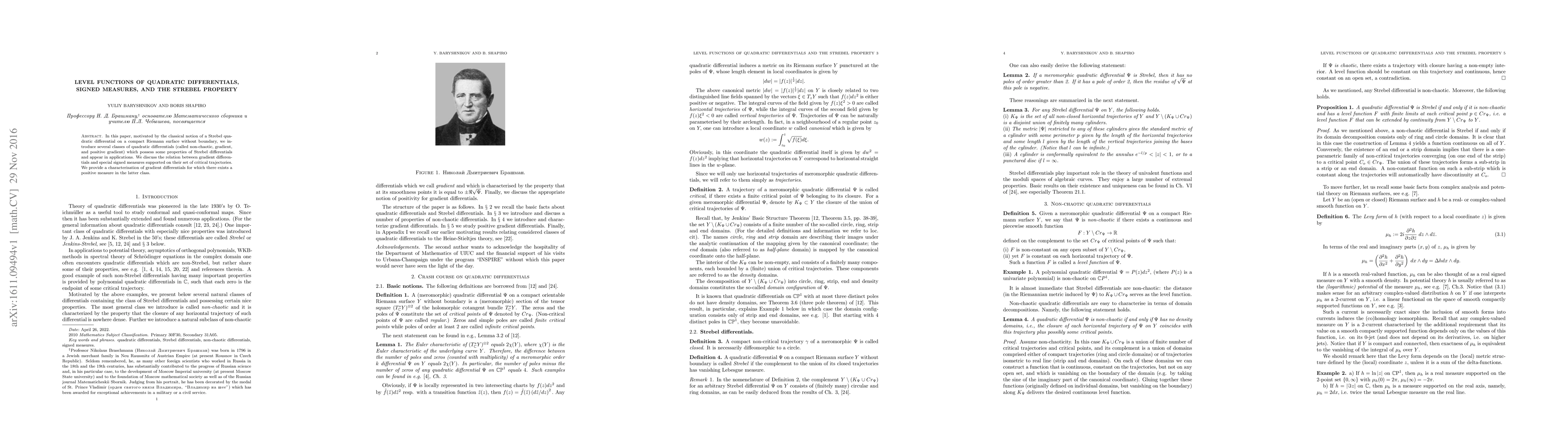 This paper introduces new classes of quadratic differentials resembling Strebel differentials and explores their properties. It also examines the connection between gradient differentials and specific signed measures on their critical trajectories, providing a characterization for those gradient differentials that support a positive measure.