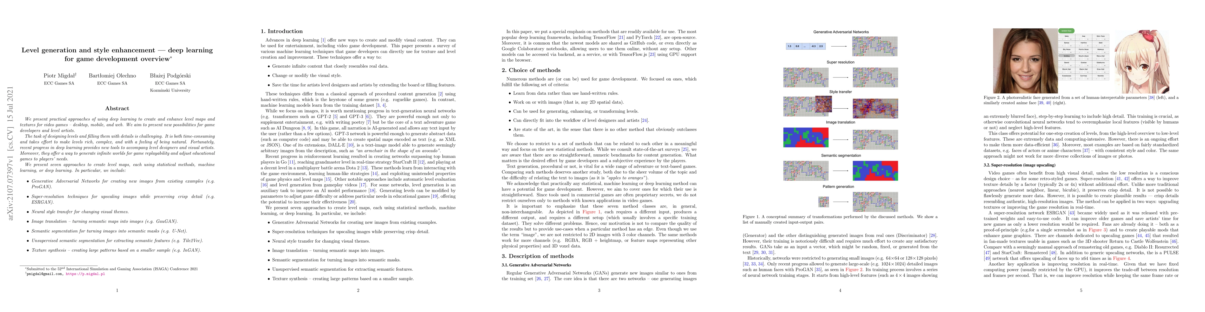 We present practical approaches of using deep learning to create and enhance level maps and textures for video games -- desktop, mobile, and web. We aim to present new possibilities for game developers and level artists. The task of designing levels and filling them with details is challenging. It is both time-consuming and takes effort to make levels rich, complex, and with a feeling of being natural. Fortunately, recent progress in deep learning provides new tools to accompany level designers and visual artists. Moreover, they offer a way to generate infinite worlds for game replayability and adjust educational games to players' needs. We present seven approaches to create level maps, each using statistical methods, machine learning, or deep learning. In particular, we include: - Generative Adversarial Networks for creating new images from existing examples (e.g. ProGAN). - Super-resolution techniques for upscaling images while preserving crisp detail (e.g. ESRGAN). - Neural style transfer for changing visual themes. - Image translation - turning semantic maps into images (e.g. GauGAN). - Semantic segmentation for turning images into semantic masks (e.g. U-Net). - Unsupervised semantic segmentation for extracting semantic features (e.g. Tile2Vec). - Texture synthesis - creating large patterns based on a smaller sample (e.g. InGAN).