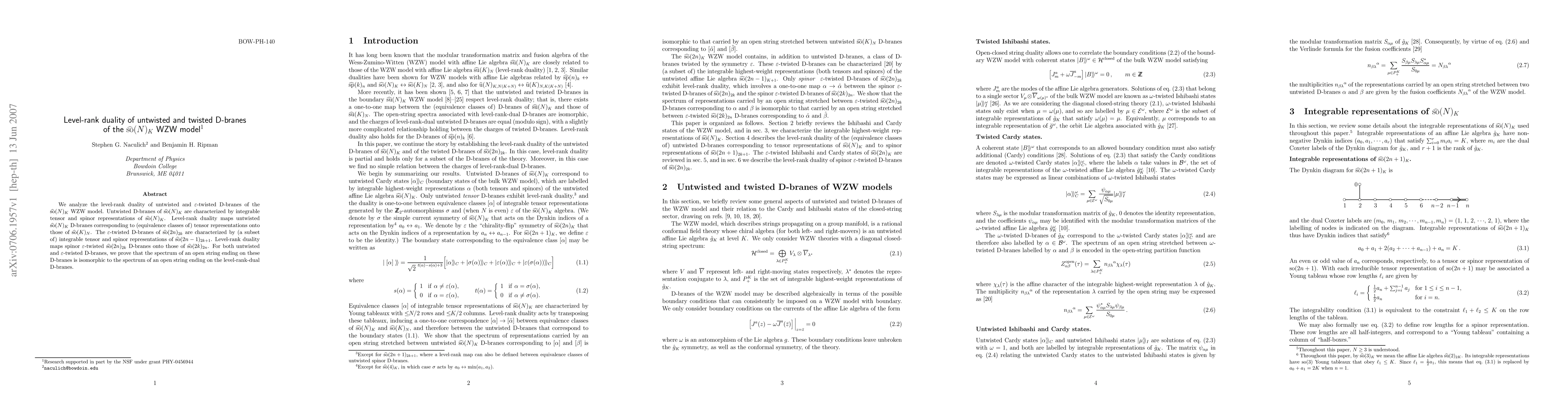 This paper explores the level-rank duality of untwisted and epsilon-twisted D-branes in the so(N)_K WZW model, demonstrating that untwisted D-branes correspond to tensor representations and are dual to so(K)_N, while epsilon-twisted D-branes correspond to spinor representations and are dual to so(2k)_2n. The study proves the isomorphism of open string spectra between original and dual D-branes.