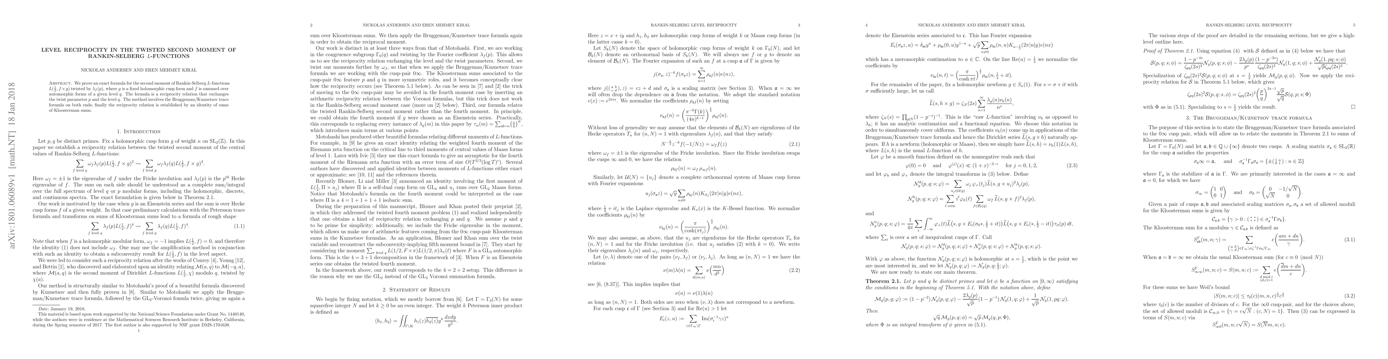 The paper employs the Bruggeman/Kuznetsov trace formula on both ends of the proof, leading to an identity of sums of Kloosterman sums to establish the reciprocity relation.