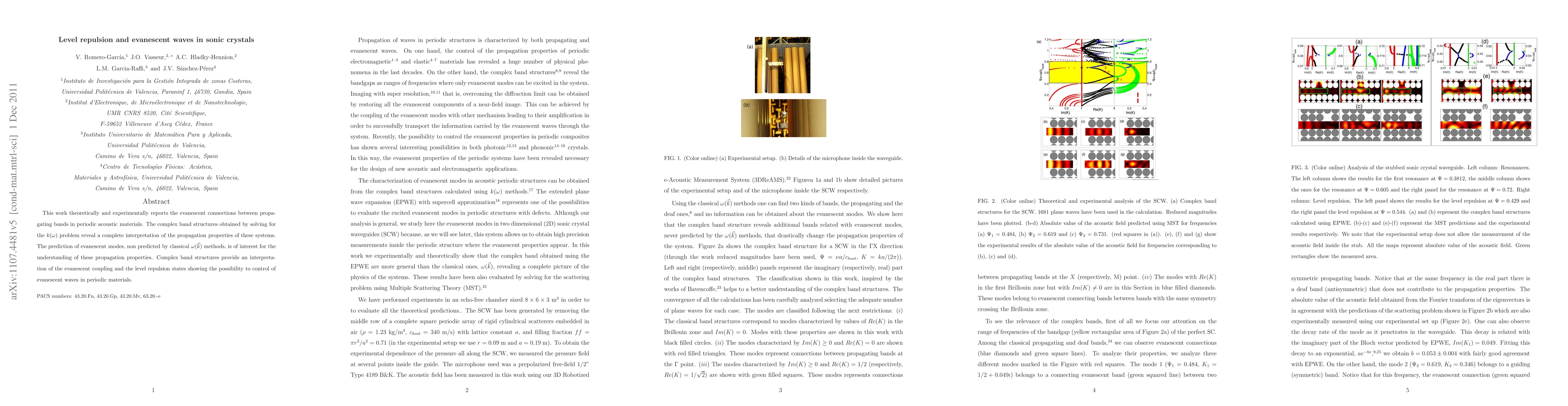 This paper explores the evanescent connections between bands in sonic crystals, revealing complex band structures that predict evanescent modes not captured by classical methods. The findings provide insight into controlling evanescent waves and level repulsion in periodic acoustic materials.