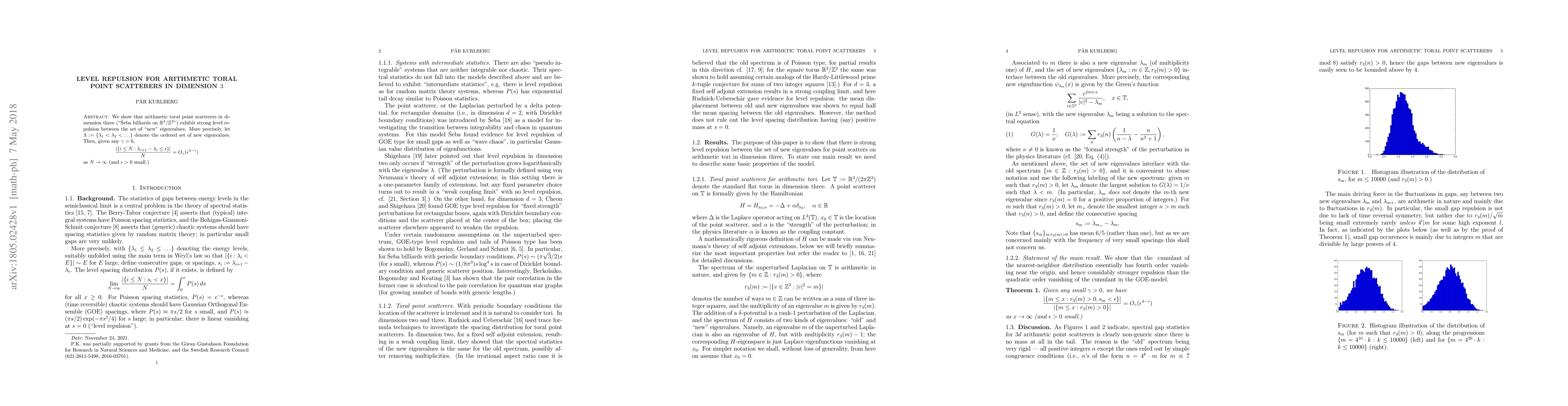 This paper demonstrates strong level repulsion for arithmetic toral point scatterers in three dimensions, specifically "Seba billiards on $R^3/Z^3$," showing that the probability of "new" eigenvalues clustering closely decreases rapidly as the gap between them shrinks. The result is quantified by the asymptotic behavior of the ratio of eigenvalues within a small interval.