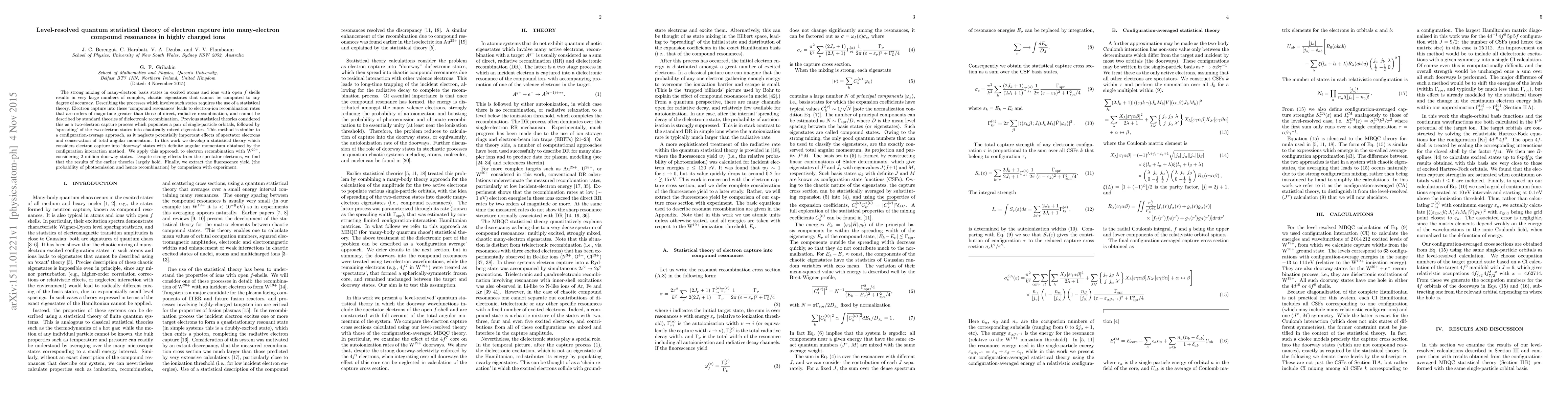 The strong mixing of many-electron basis states in excited atoms and ions with open $f$ shells results in very large numbers of complex, chaotic eigenstates that cannot be computed to any degree of accuracy. Describing the processes which involve such states requires the use of a statistical theory. Electron capture into these 'compound resonances' leads to electron-ion recombination rates that are orders of magnitude greater than those of direct, radiative recombination, and cannot be described by standard theories of dielectronic recombination. Previous statistical theories considered this as a two-electron capture process which populates a pair of single-particle orbitals, followed by 'spreading' of the two-electron states into chaotically mixed eigenstates. This method is similar to a configuration-average approach, as it neglects potentially important effects of spectator electrons and conservation of total angular momentum. In this work we develop a statistical theory which considers electron capture into 'doorway' states with definite angular momentum obtained by the configuration interaction method. We apply this approach to electron recombination with W$^{20+}$, considering 2 million doorway states. Despite strong effects from the spectator electrons, we find that the results of the earlier theories largely hold. Finally, we extract the fluorescence yield (the probability of photoemission and hence recombination) by comparison with experiment.
