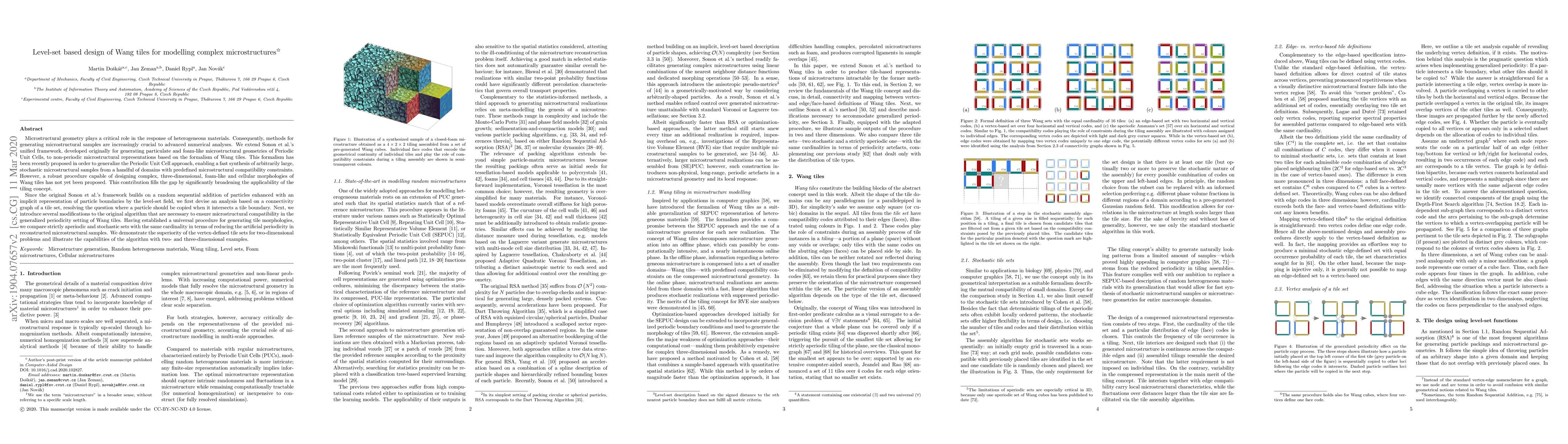 A new method for designing complex microstructures using Wang tiles is presented, allowing for fast generation of arbitrarily large, stochastic samples with predefined compatibility constraints.