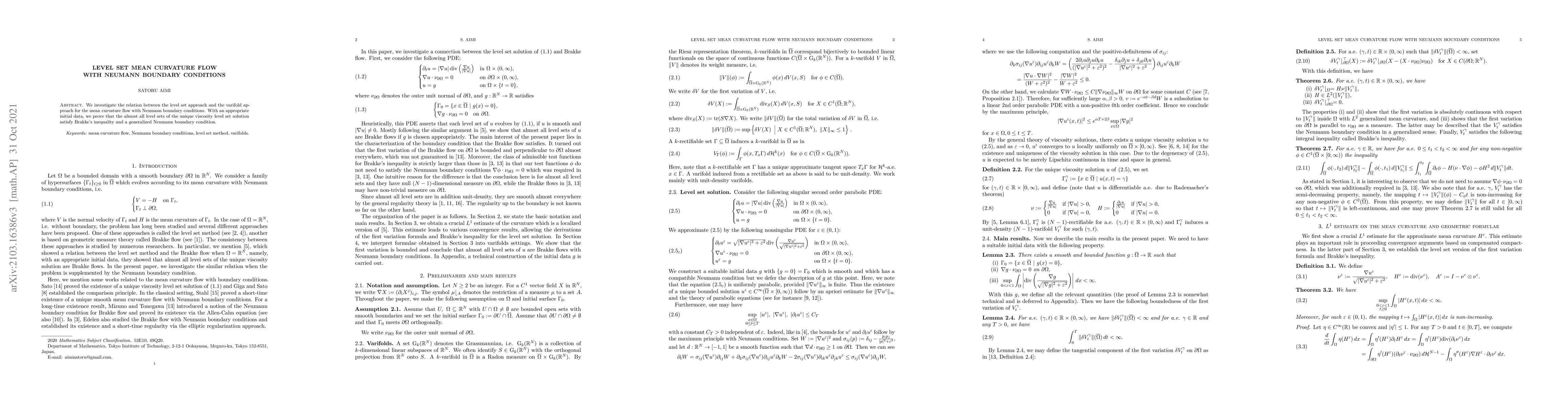 We investigate the relation between the level set approach and the varifold approach for the mean curvature flow with Neumann boundary conditions. With an appropriate initial data, we prove that the almost all level sets of the unique viscosity level set solution satisfy Brakke's inequality and a generalized Neumann boundary condition.