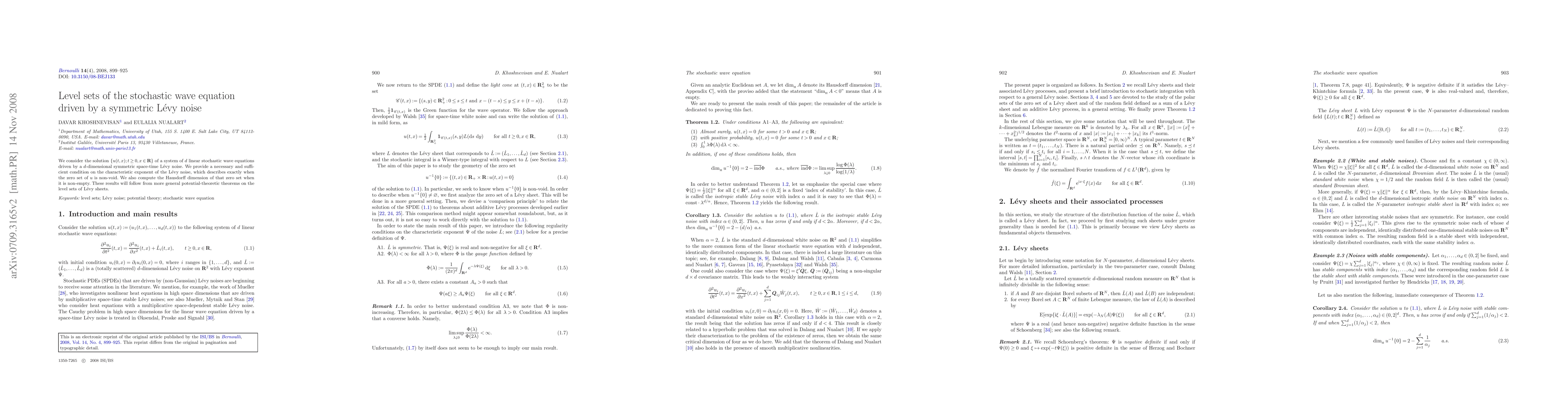 The paper establishes a link between the characteristic exponent of the Lévy noise and the non-emptiness of the zero set of the solution, providing a potential-theoretic framework for analyzing level sets of stochastic processes.
