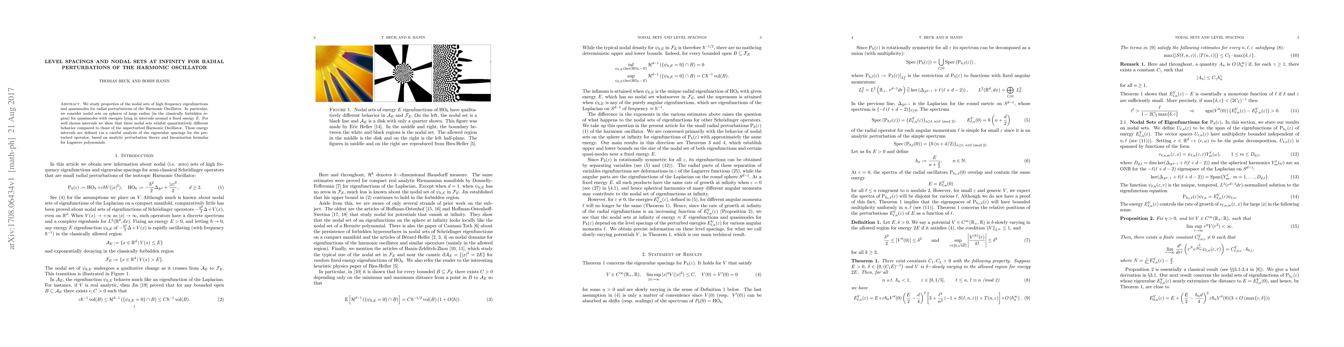 We study properties of the nodal sets of high frequency eigenfunctions and quasimodes for radial perturbations of the Harmonic Oscillator. In particular, we consider nodal sets on spheres of large radius (in the classically forbidden region) for quasimodes with energies lying in intervals around a fixed energy $E$. For well chosen intervals we show that these nodal sets exhibit quantitatively different behavior compared to those of the unperturbed Harmonic Oscillator. These energy intervals are defined via a careful analysis of the eigenvalue spacings for the perturbed operator, based on analytic perturbation theory and linearization formulas for Laguerre polynomials.
