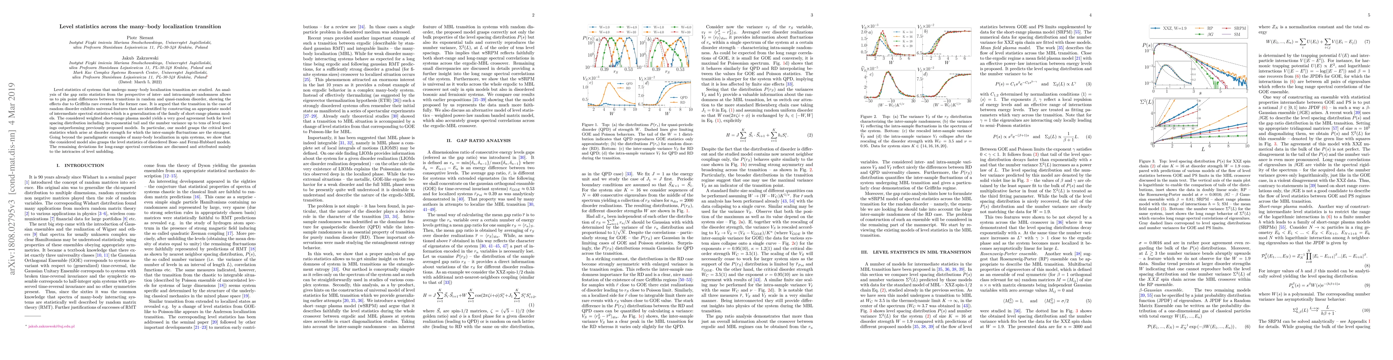 This paper investigates level statistics across the many-body localization transition, identifying universal features in random disorder systems through a weighted short-range plasma model. The model effectively captures critical level statistics and outperforms previous models, extending its applicability to Bose- and Fermi-Hubbard models.