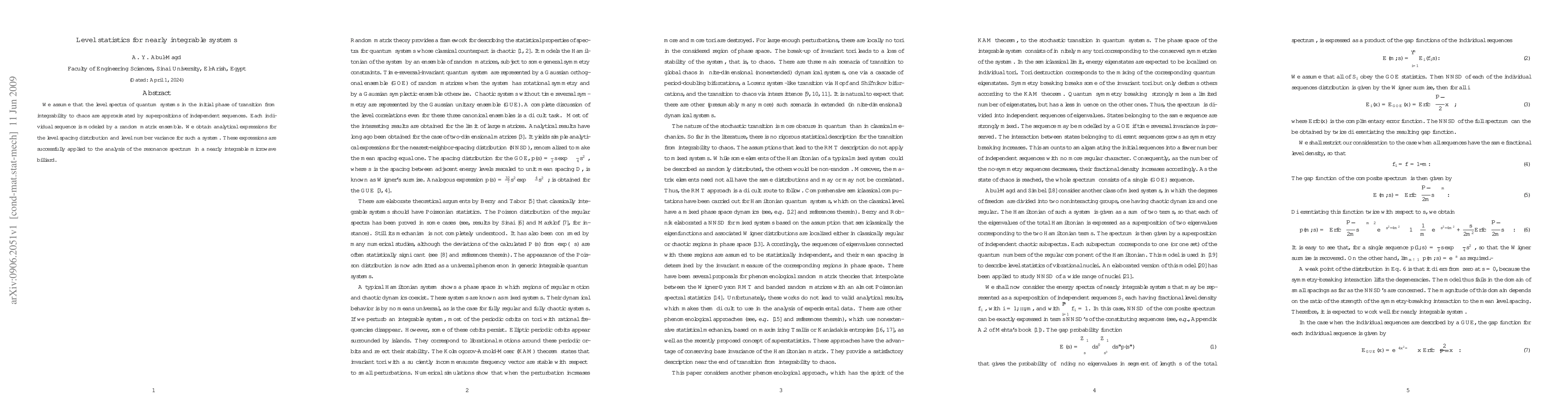 This paper investigates the level statistics of quantum systems transitioning from integrability to chaos, modeling them as superpositions of independent random matrix ensembles. The authors derive analytical expressions for the level spacing distribution and level number variance, which are then applied to analyze the resonance spectrum in a nearly integrable microwave billiard.