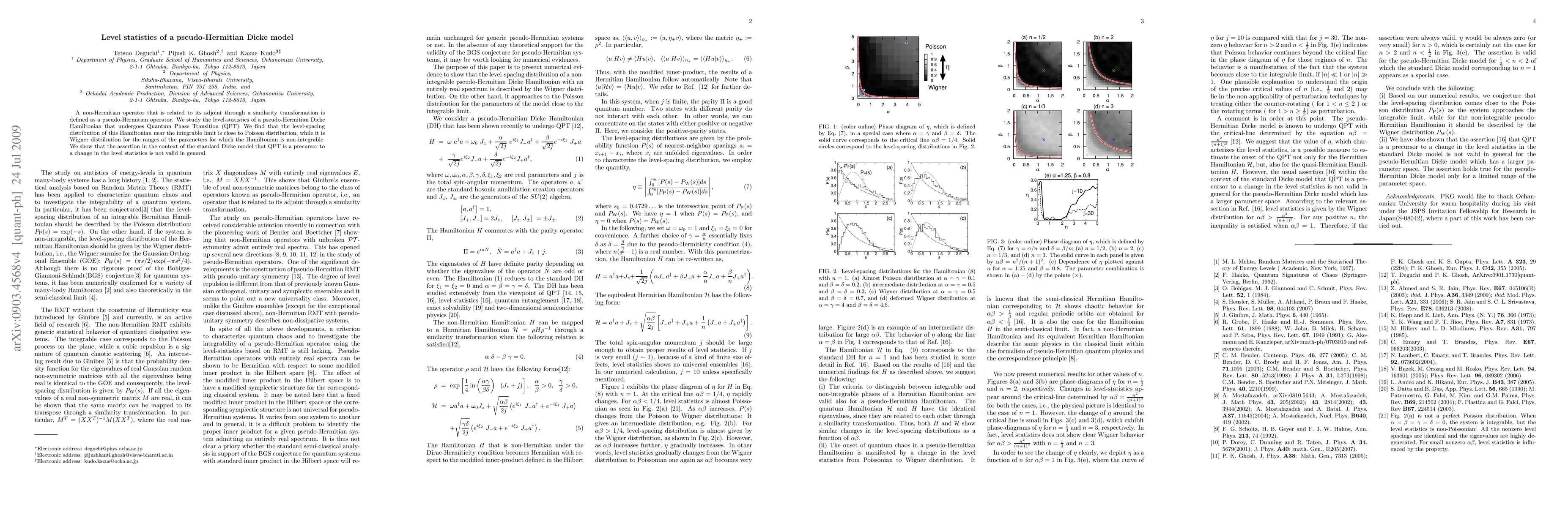 This paper investigates the level statistics of a pseudo-Hermitian Dicke model undergoing quantum phase transitions, revealing that the level-spacing distribution shifts from Poisson to Wigner as the model moves from an integrable to a non-integrable regime. It concludes that quantum phase transitions do not universally predict changes in level statistics, contrary to the standard Dicke model.