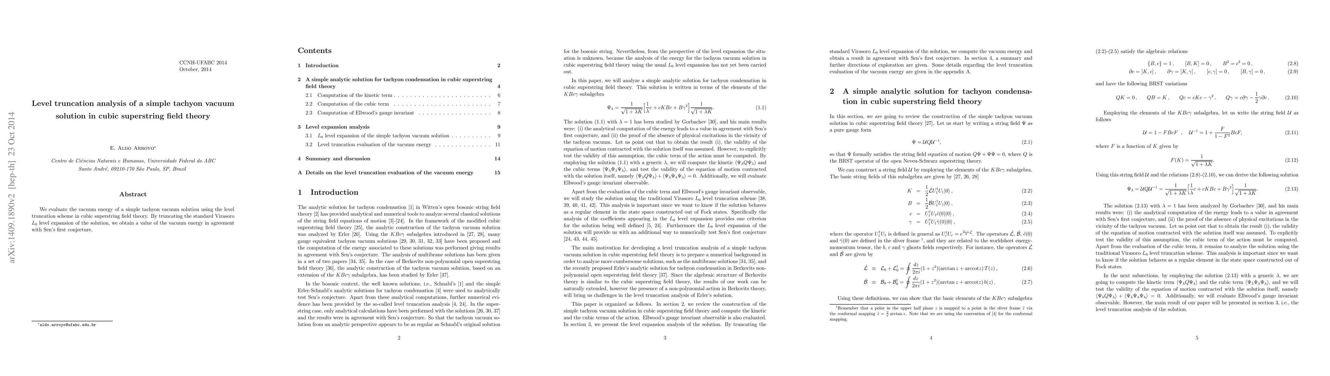 Summary: The paper evaluates the vacuum energy of a tachyon vacuum solution in cubic superstring field theory via level truncation, confirming Sen's first conjecture with the obtained vacuum energy value.