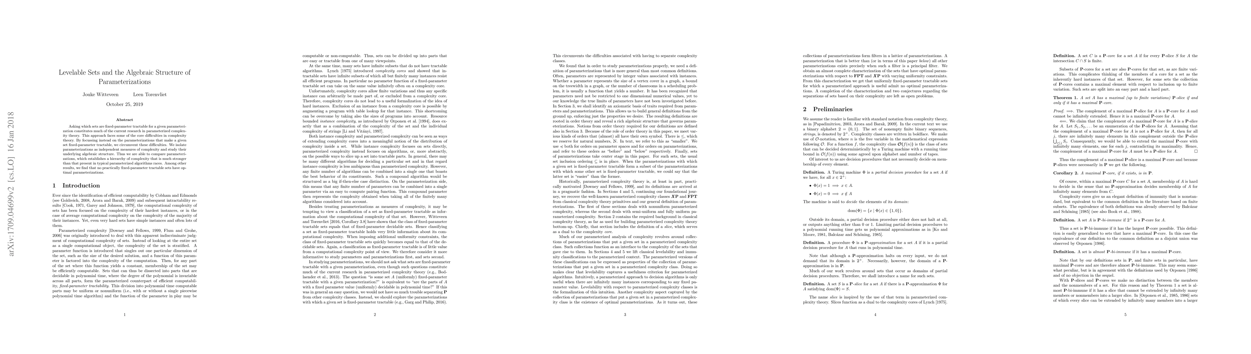 Researchers study parameterizations to identify which sets are fixed-parameter tractable, discovering that no practically fixed-parameter tractable sets have optimal parameterizations, establishing a hierarchy of complexity.