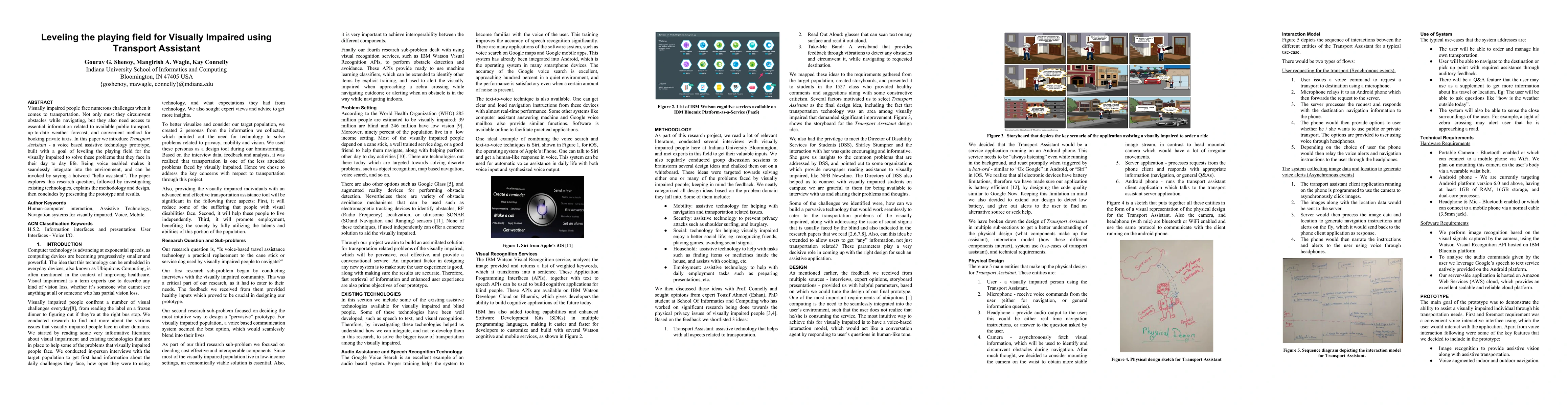 This paper introduces a voice-based Transport Assistant prototype aimed at addressing the transportation challenges faced by visually impaired individuals by providing essential information and booking services through voice commands. The study explores existing technologies, outlines the methodology and design, and presents the prototype along with preliminary results.