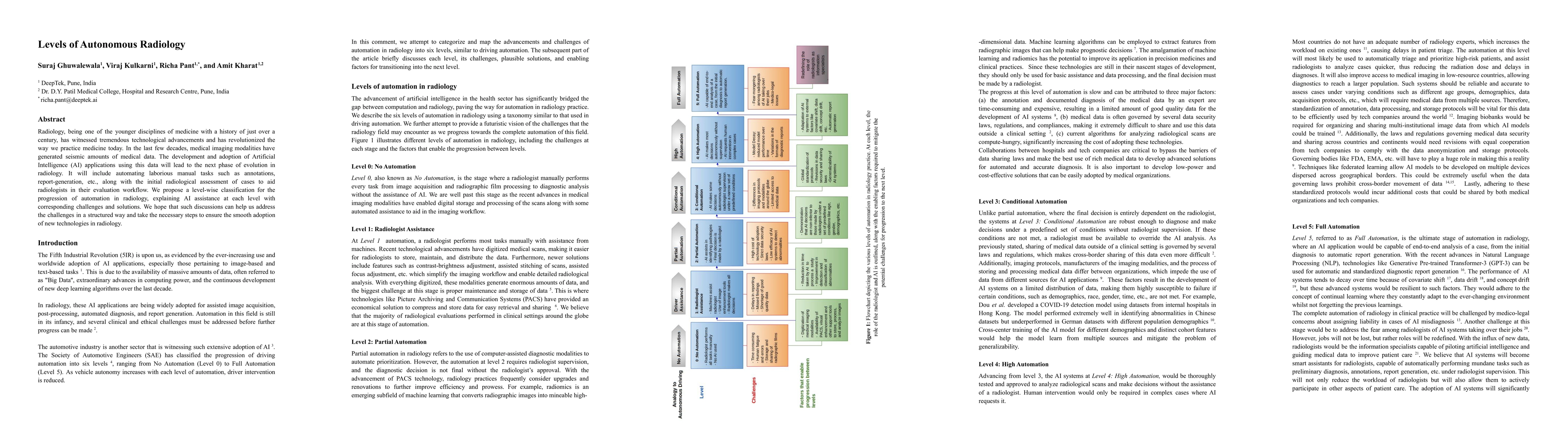 The study proposes a level-wise classification for the progression of automation in radiology, explaining AI assistance at each level with corresponding challenges and solutions.