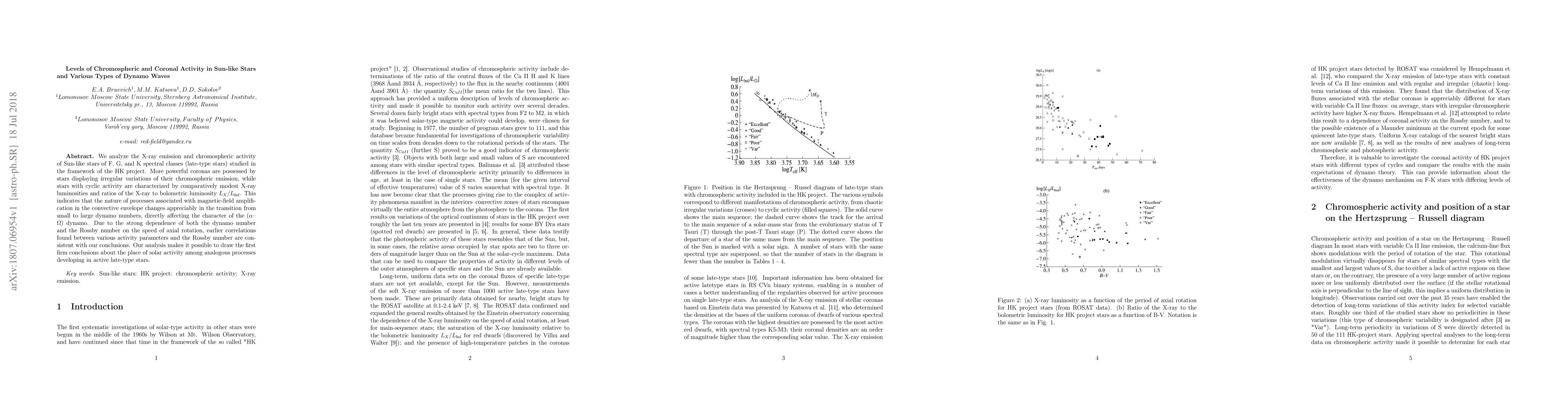 We analyze the X-ray emission and chromospheric activity of Sun-like stars of F, G and K spectral classes (late-type stars) studied in the framework of the HK project. More powerful coronas are possessed by stars displaying irregular variations of their chromospheric emission, while stars with regular cyclic activity are characterized by comparatively modest X-ray luminosities and ratios of the X-ray to bolometric luminosity. This indicates that the nature of processes associated with magnetic-field amplification on the convective envelope changes appreciably in the transition from small to large dynamo numbers, directly affecting the character of the alpha-Omega dynamo. Due to the strong dependence of both the dynamo number and the Rossby number on the speed of axial rotation, earlier correlations found between various activity parameters and the Rossby number are consistent with our conclusion. Our analysis makes it possible to draw the first firm conclusions about the place of solar activity among analogous processes developing in active late-type stars.