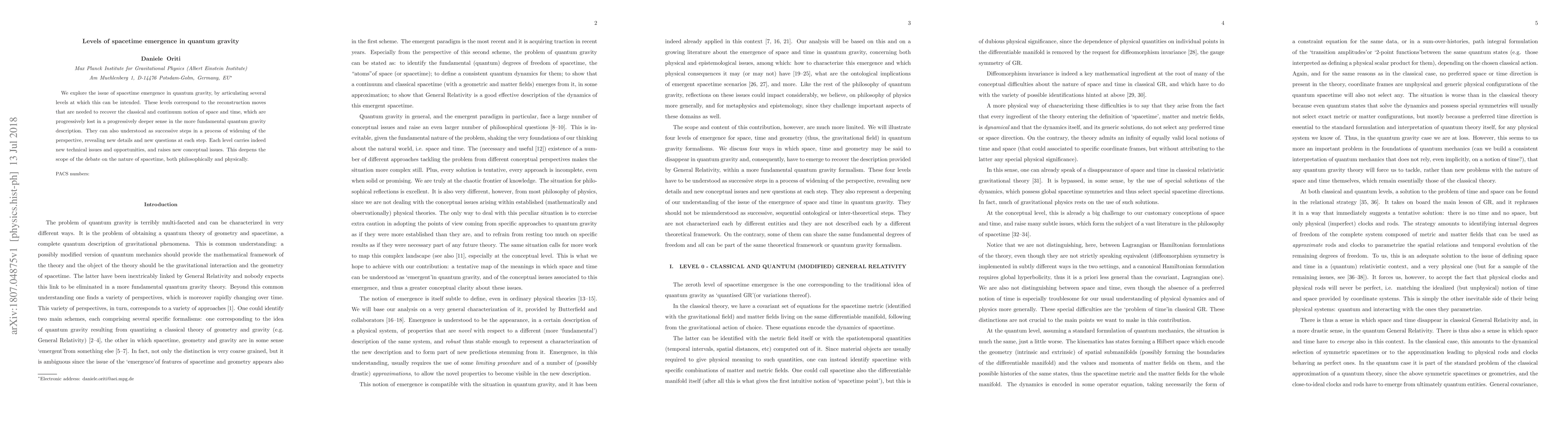 This paper investigates various levels of spacetime emergence in quantum gravity, detailing the reconstruction processes needed to recover classical notions of space and time. Each level introduces new technical and conceptual challenges, deepening the philosophical and physical discourse on the nature of spacetime.