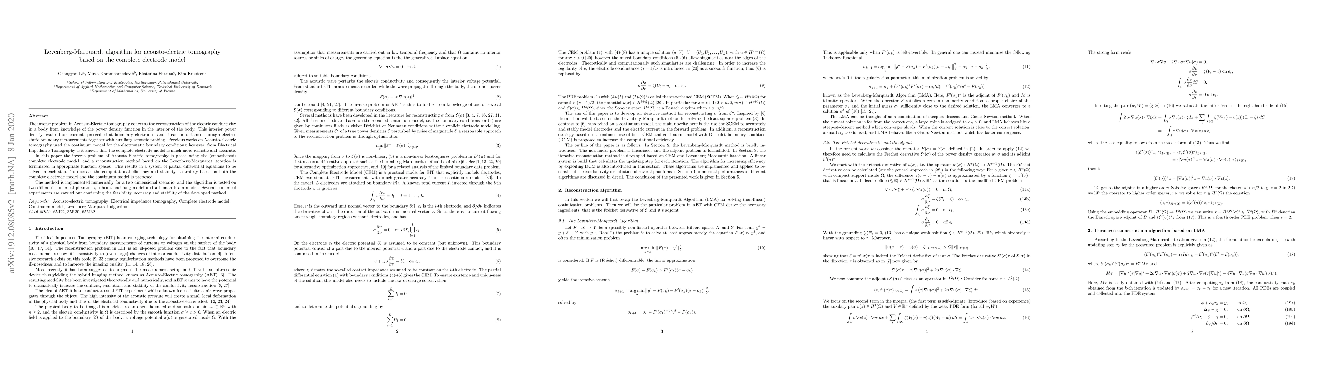 The inverse problem in Acousto-Electric tomography concerns the reconstruction of the electric conductivity in a domain from knowledge of the power density function in the interior of the body. This interior power density results from currents prescribed at boundary electrodes (and can be obtained through electro-static boundary measurements together with auxiliary acoustic measurement. In Electrical Impedance Tomography, the complete electrode model is known to be the most accurate model for the forward modelling. In this paper, the reconstruction problem of Acousto-Electric tomography is posed using the (smooth) complete electrode model, and a Levenberg-Marquardt iteration is formulated in appropriate function spaces. This results in a system of partial differential equations to be solved in each iteration. To increase the computational efficiency and stability, a strategy based on both the complete electrode model and the continuum model with Dirichlet boundary condition is proposed. The system of equations is implemented numerically for a two dimensional scenario and the algorithm is tested on two different numerical phantoms, a heart and lung model and a human brain model. Several numerical experiments are carried out confirming the feasibility, accuracy and stability of the methods.