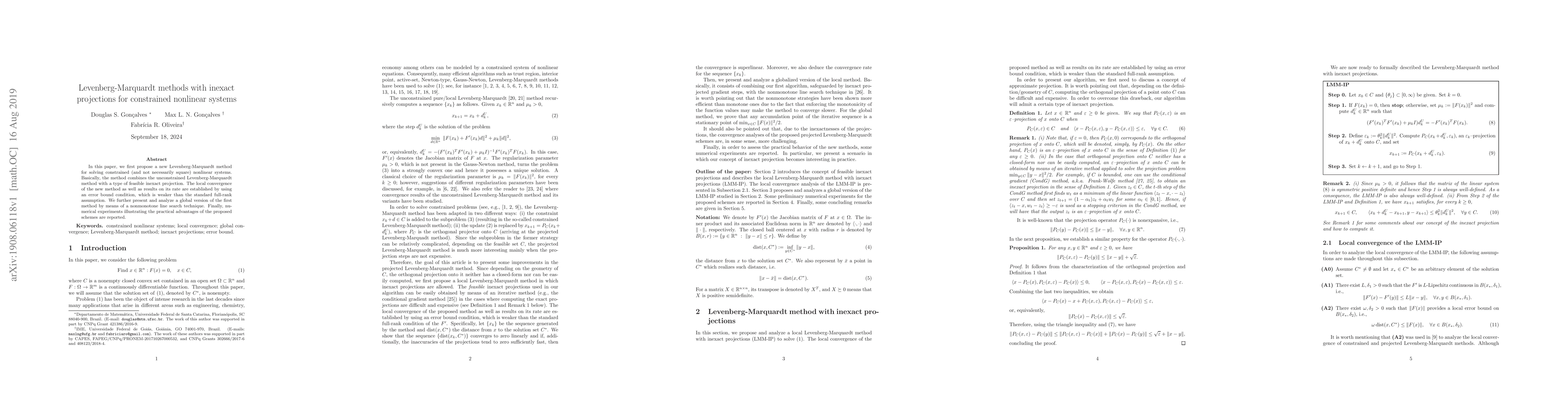 This paper introduces a novel Levenberg-Marquardt method for solving constrained nonlinear systems, combining it with feasible inexact projections. The method's local convergence and rate are established under a weaker error bound condition, and a global version is analyzed using a nonmonotone line search technique. Numerical experiments demonstrate practical advantages of the proposed schemes.