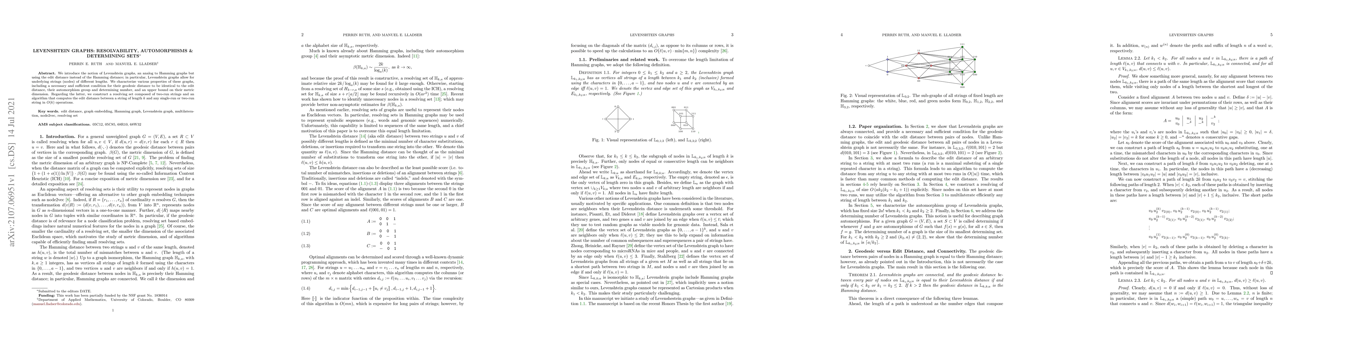 This paper introduces Levenshtein graphs, which use edit distance instead of Hamming distance, allowing for strings of different lengths. It characterizes their properties, including conditions for geodesic distance equivalence, automorphism group, determining number, and provides an algorithm for computing edit distances in $O(k)$ operations.