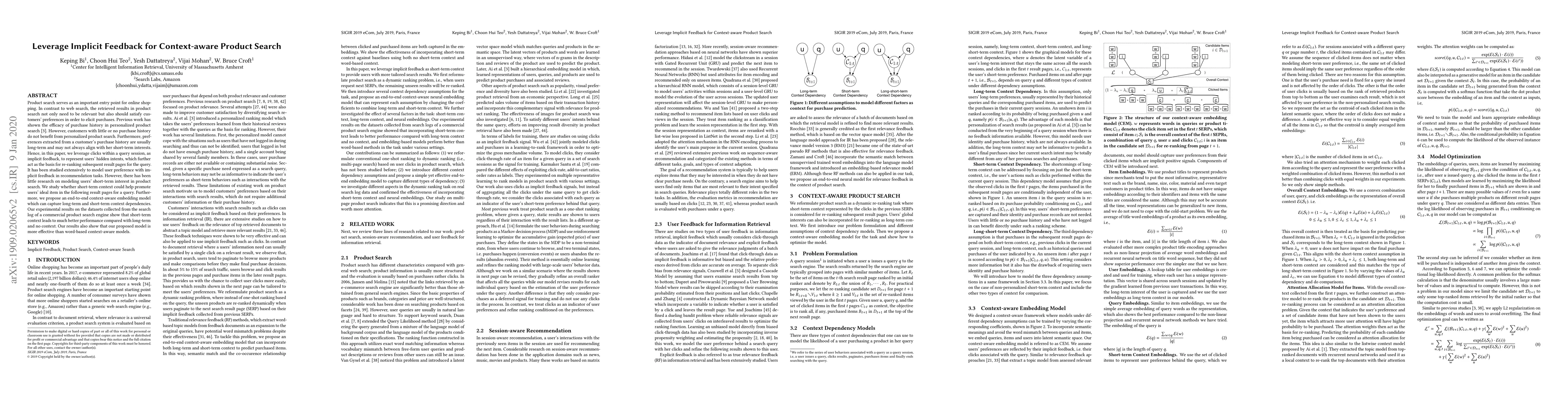 This paper proposes leveraging implicit feedback from clicks within a query session to enhance context-aware product search, addressing the limitations of long-term preferences based on purchase history. The study introduces a context-aware embedding model that captures both long-term and short-term context, demonstrating improved search performance through short-term context modeling.