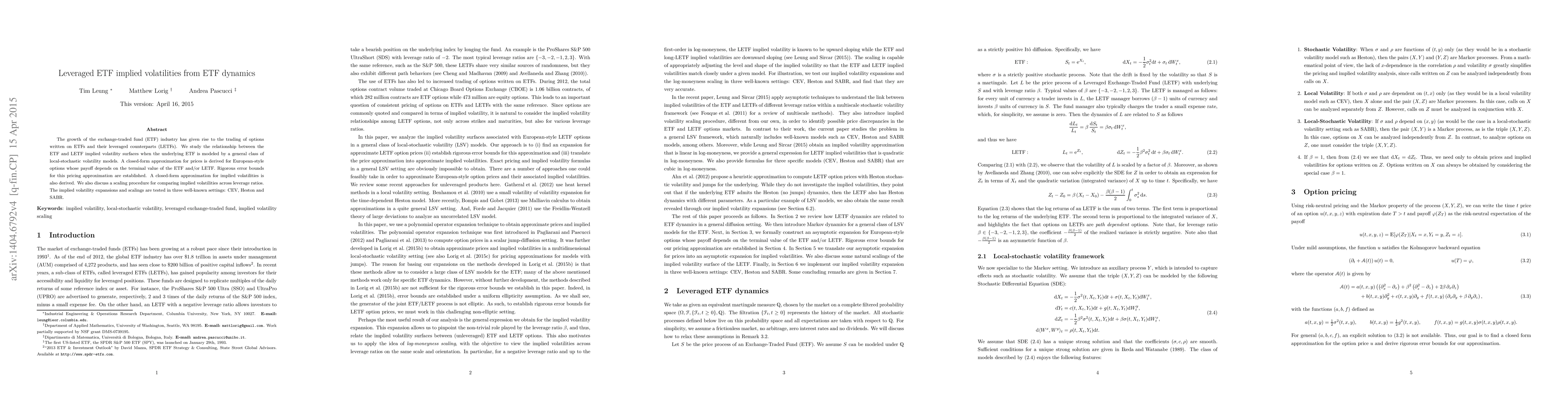 The growth of the exhange-traded fund (ETF) industry has given rise to the trading of options written on ETFs and their leveraged counterparts {(LETFs)}. We study the relationship between the ETF and LETF implied volatility surfaces when the underlying ETF is modeled by a general class of local-stochastic volatility models. A closed-form approximation for prices is derived for European-style options whose payoff depends on the terminal value of the ETF and/or LETF. Rigorous error bounds for this pricing approximation are established. A closed-form approximation for implied volatilities is also derived. We also discuss a scaling procedure for comparing implied volatilities across leverage ratios. The implied volatility expansions and scalings are tested in three well-known settings: CEV, Heston and SABR.