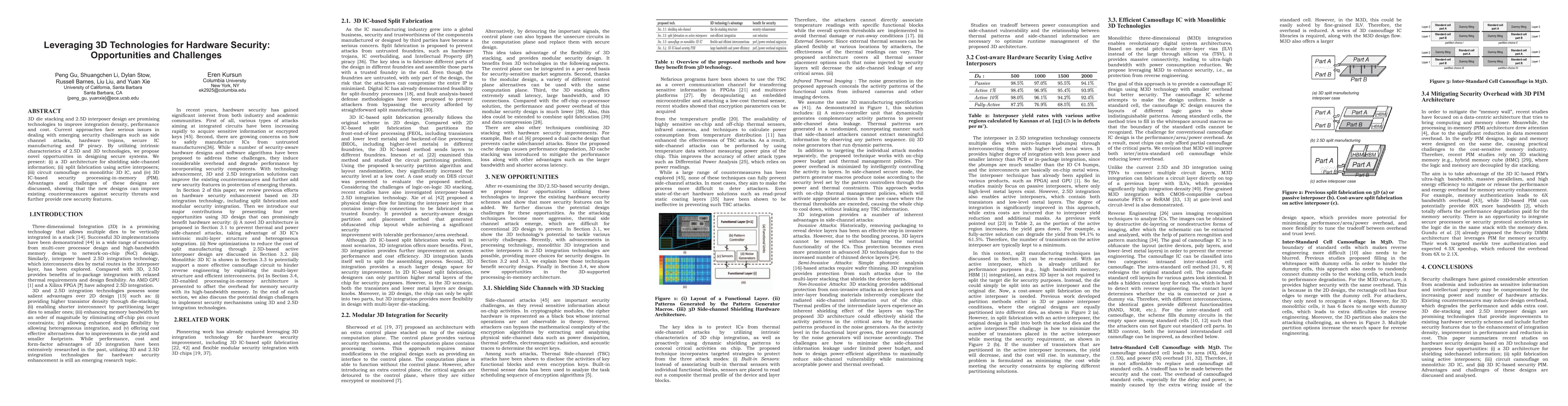3D die stacking and 2.5D interposer design are promising technologies to improve integration density, performance and cost. Current approaches face serious issues in dealing with emerging security challenges such as side channel attacks, hardware trojans, secure IC manufacturing and IP piracy. By utilizing intrinsic characteristics of 2.5D and 3D technologies, we propose novel opportunities in designing secure systems. We present: (i) a 3D architecture for shielding side-channel information; (ii) split fabrication using active interposers; (iii) circuit camouflage on monolithic 3D IC, and (iv) 3D IC-based security processing-in-memory (PIM). Advantages and challenges of these designs are discussed, showing that the new designs can improve existing countermeasures against security threats and further provide new security features.