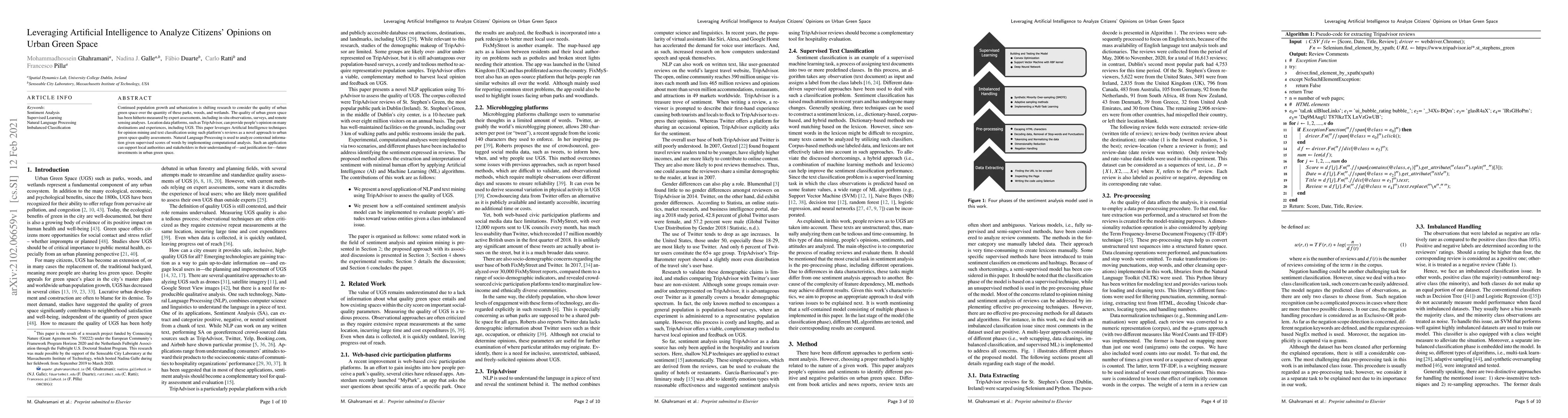 This paper utilizes Artificial Intelligence and Natural Language Processing to analyze citizens' opinions on urban green space quality from review platforms like TripAdvisor. This novel approach aims to support local authorities in making informed decisions for future investments in urban green spaces.